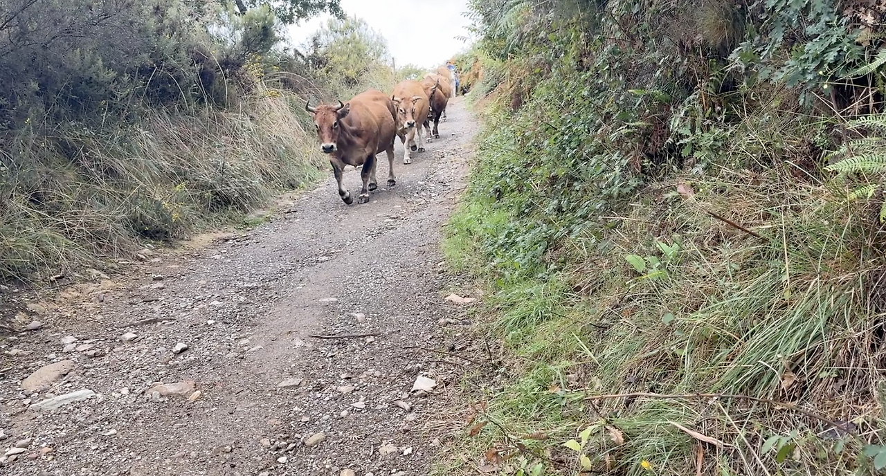 소가 줄줄이 지나간다. 이렇게까지 가까이서 소를 본 적이 없어서 뿔로 나를 들이받진 않을까 걱정했지만 너무나 순하게 잘 지나갔다.
