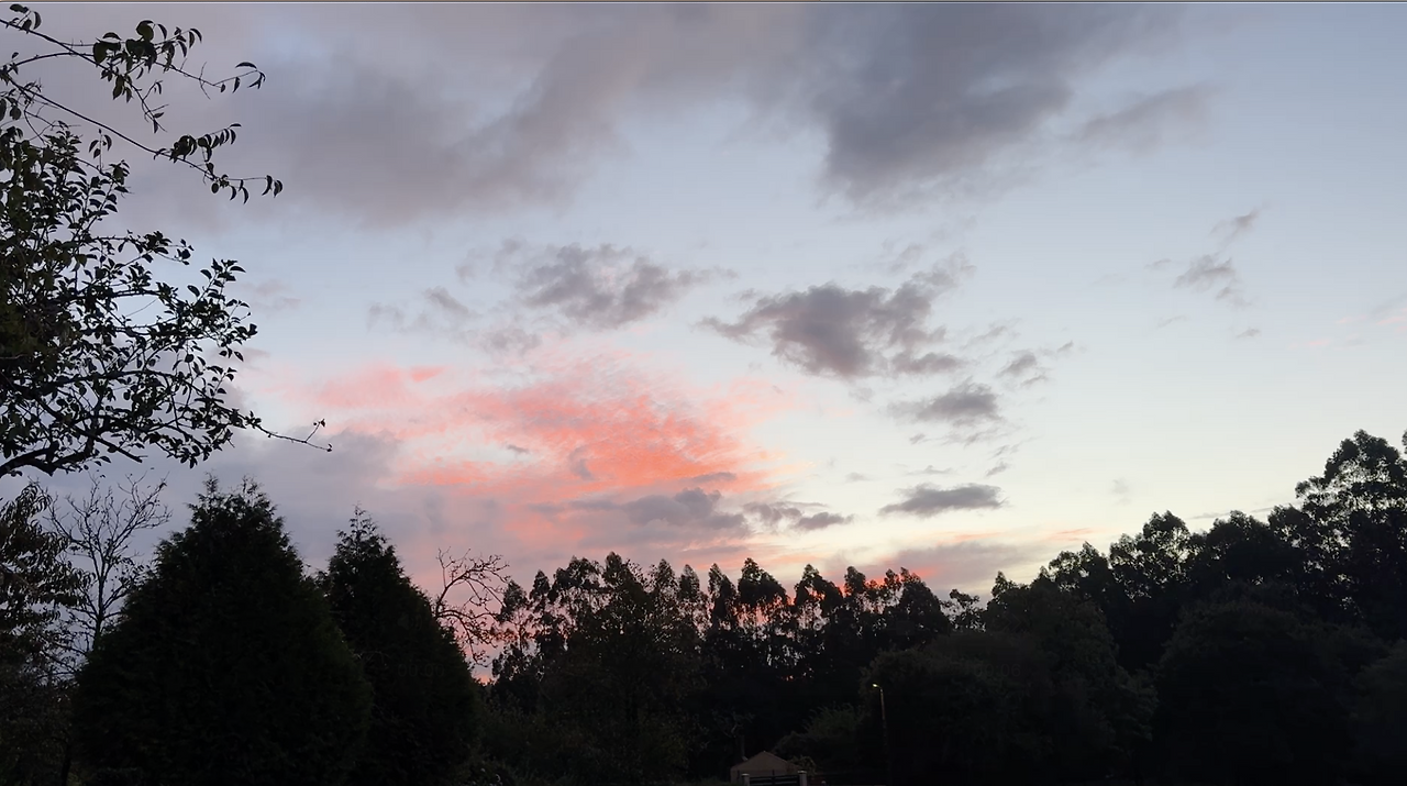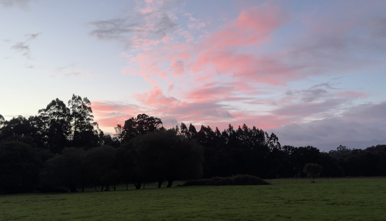 숲 속을 벗어나니 진-한 핑크 하늘이 나왔다.