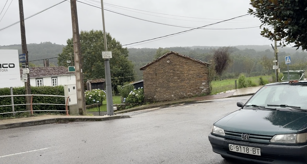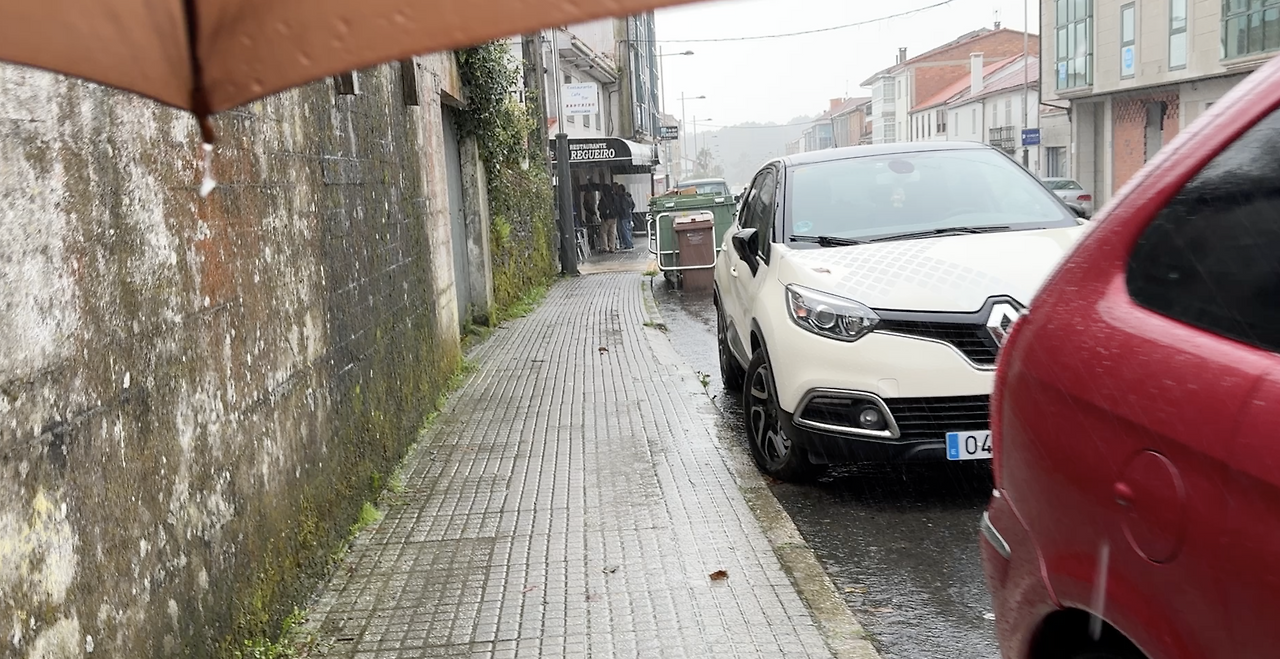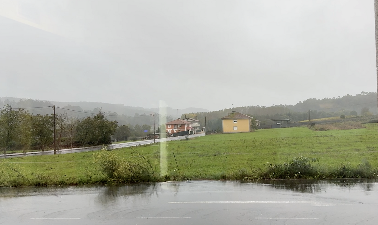 몸이 좀 괜찮아진 것 같아서 마트 가는 중. 비가 너무 많이 내려서 알베르게에서 우산 하나를 빌렸다.