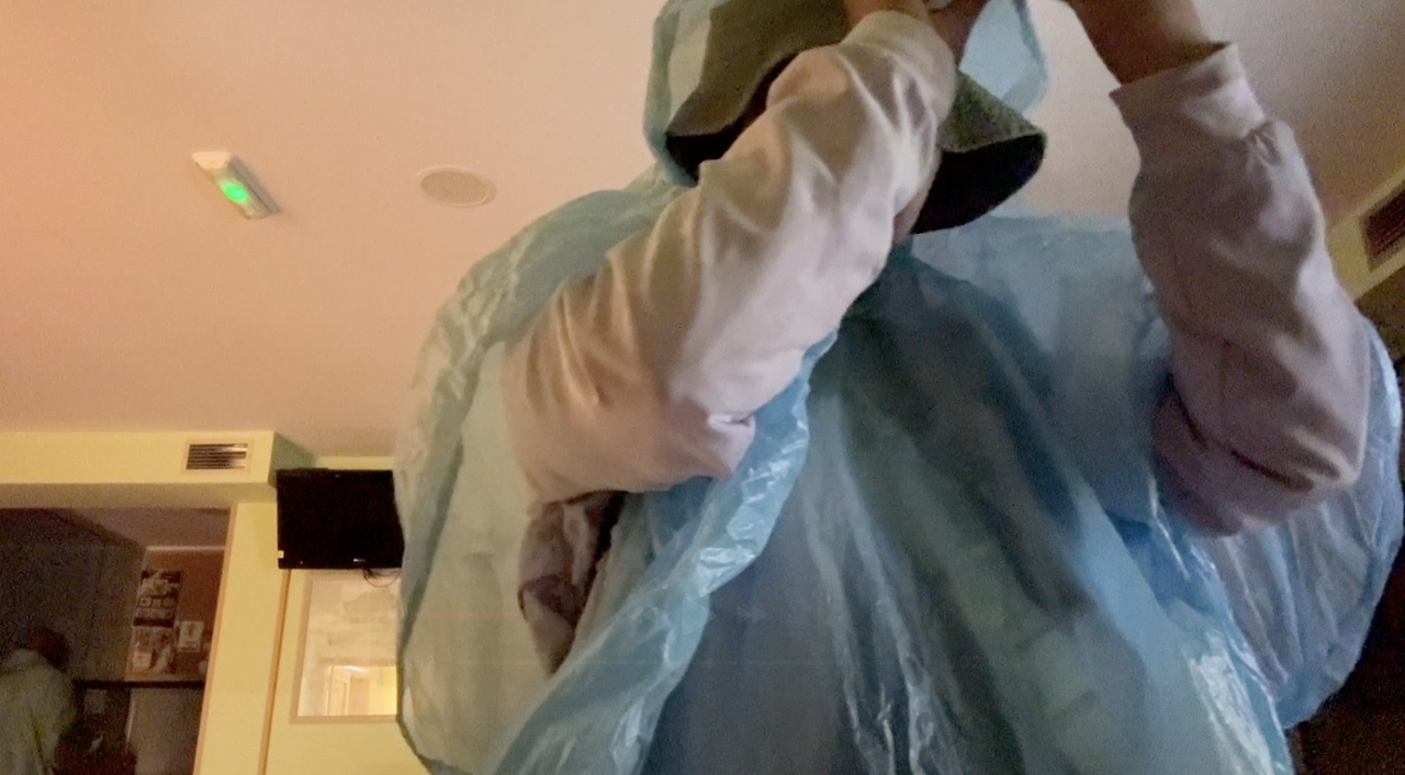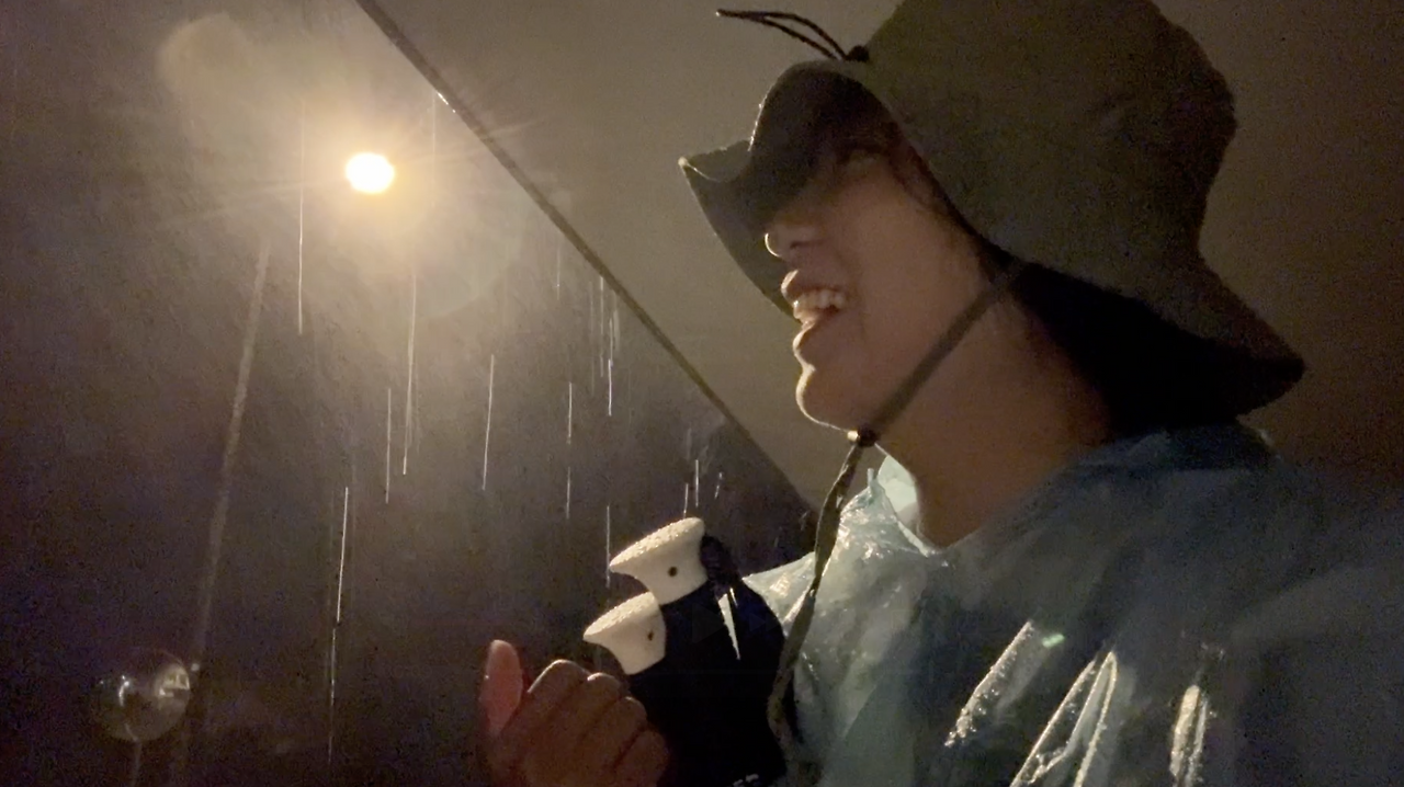 첫날에 썼던 우비를 마지막 날까지 사용한다.
