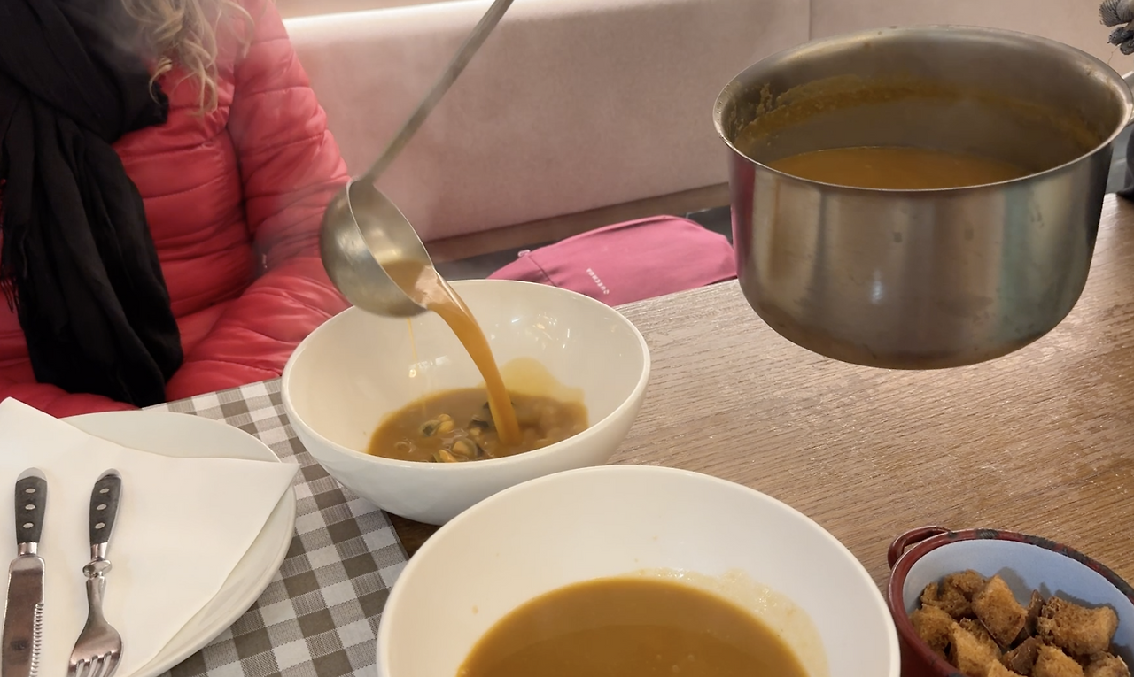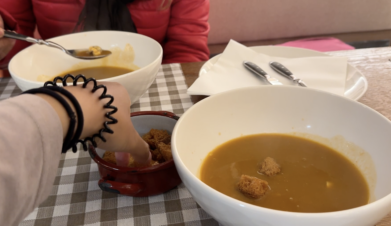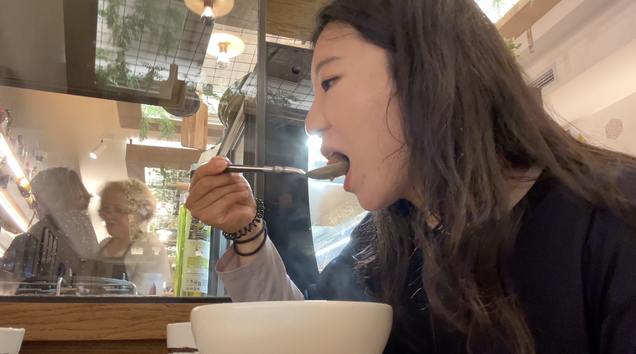우리는 따뜻한 홍합수프를 시켰다. 나는 원래 조개류가 비려서 좋아하지 않는데 너무 추워서 그냥 먹었다.