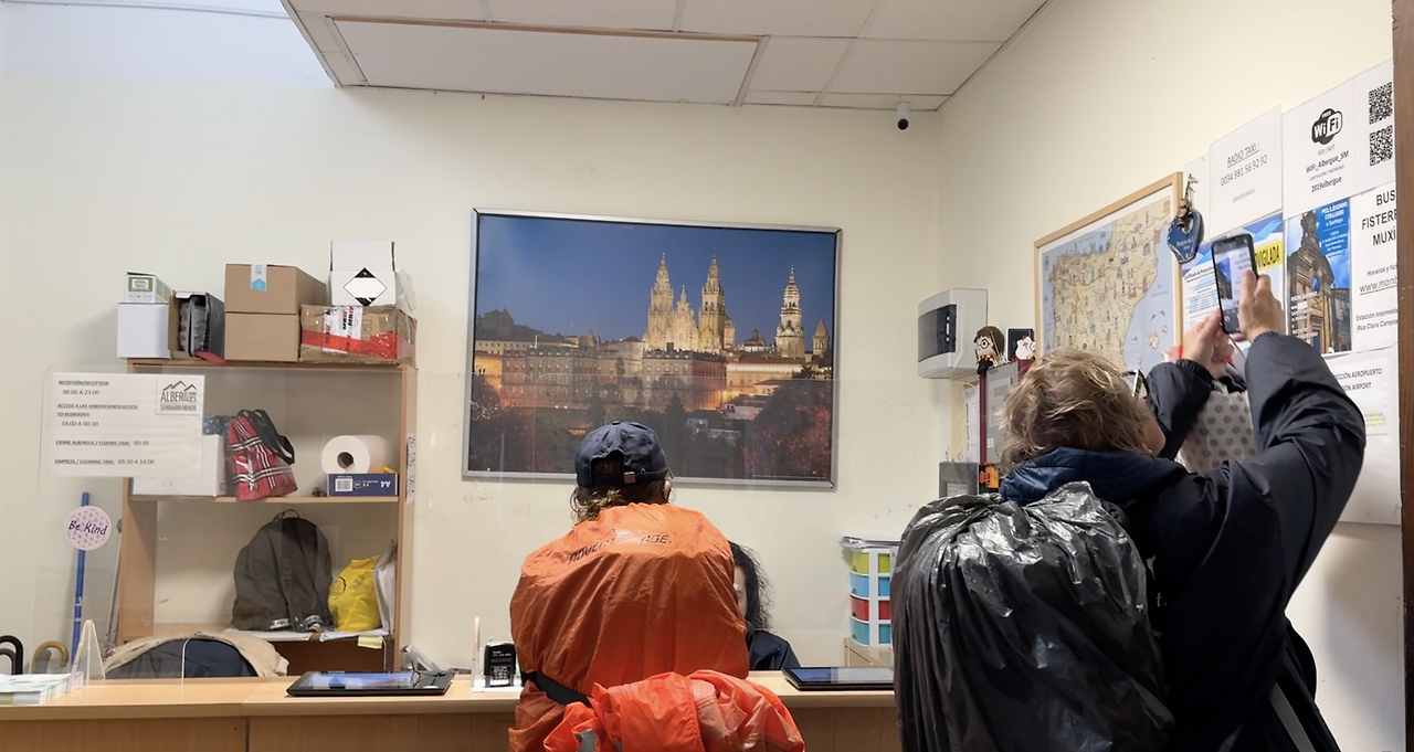 바흐레이가 나를 순례 인증서도 받는 곳으로 안내해 인증서도 받았다.