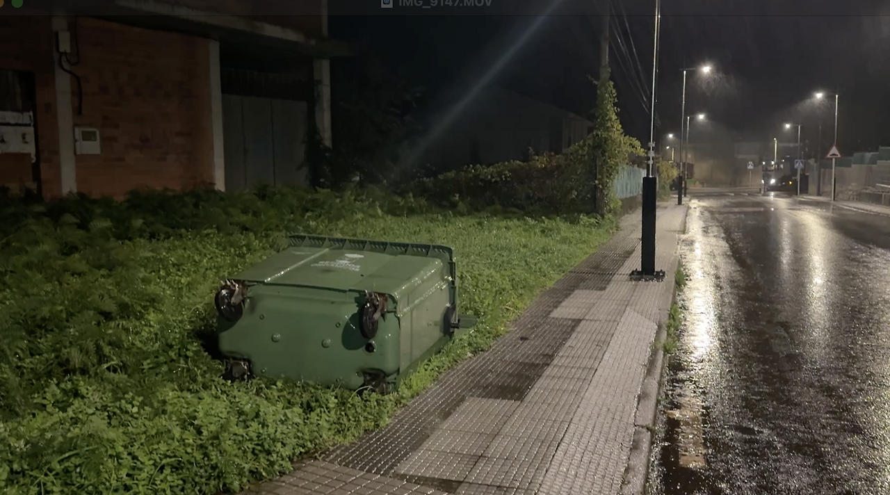 비바람에 쓰러진 쓰레기함도 발견했다.