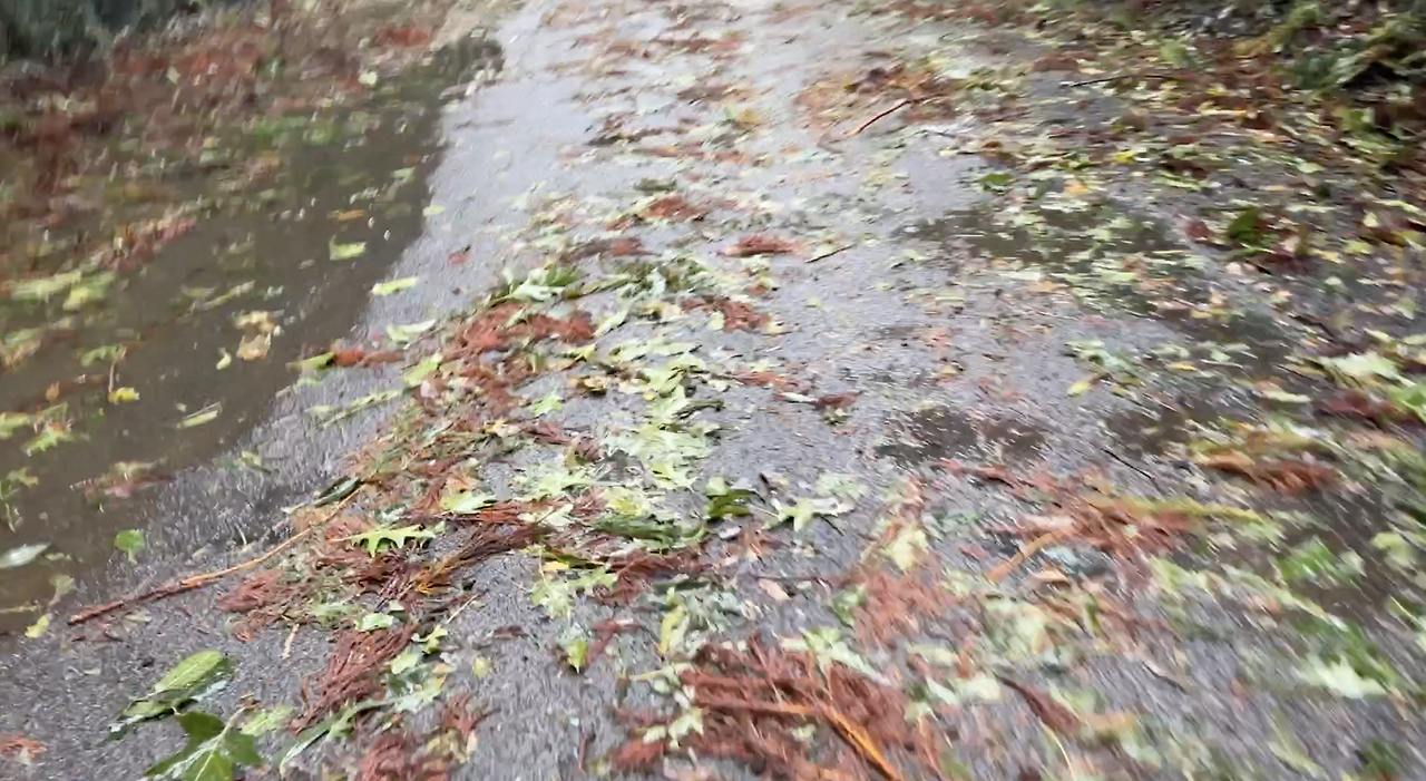 얼마 걷다가 아주 큰 나무 한 그루가 길가로 쓰러져 길을 막고 것도 발견했다. 정말 태풍인가 보다.