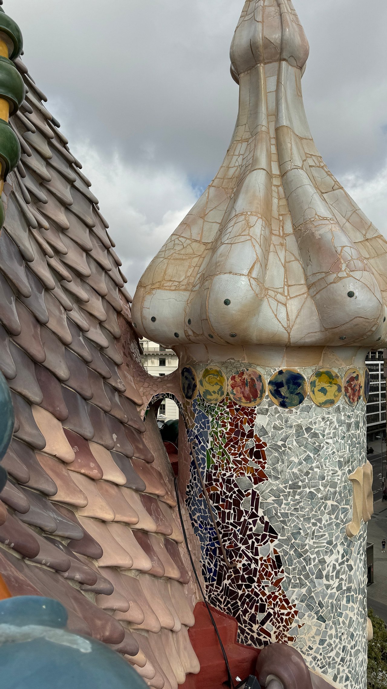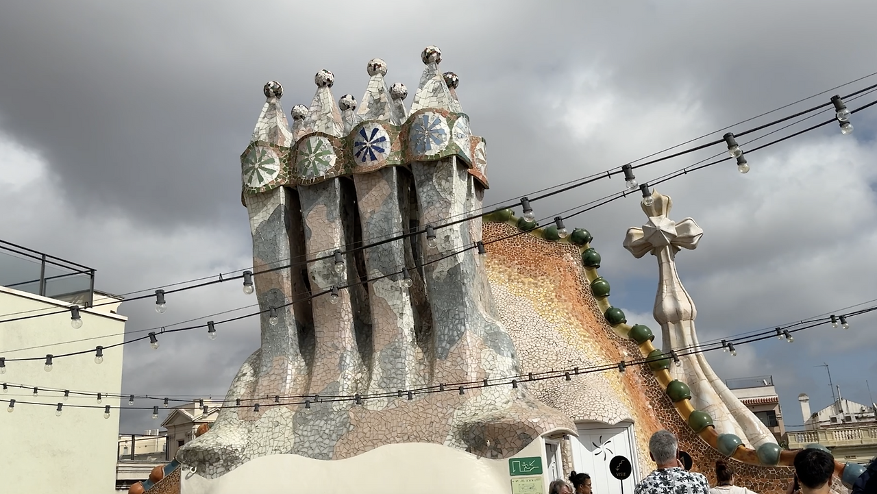 가우디는 까사 바트요를 카탈루냐 전설 ‘산조르디와 용’ 이야기에서 영감을 받아 설계했는데 지붕은 비늘처럼 생긴 타일로 덮어 용의 등을 형상화했다.