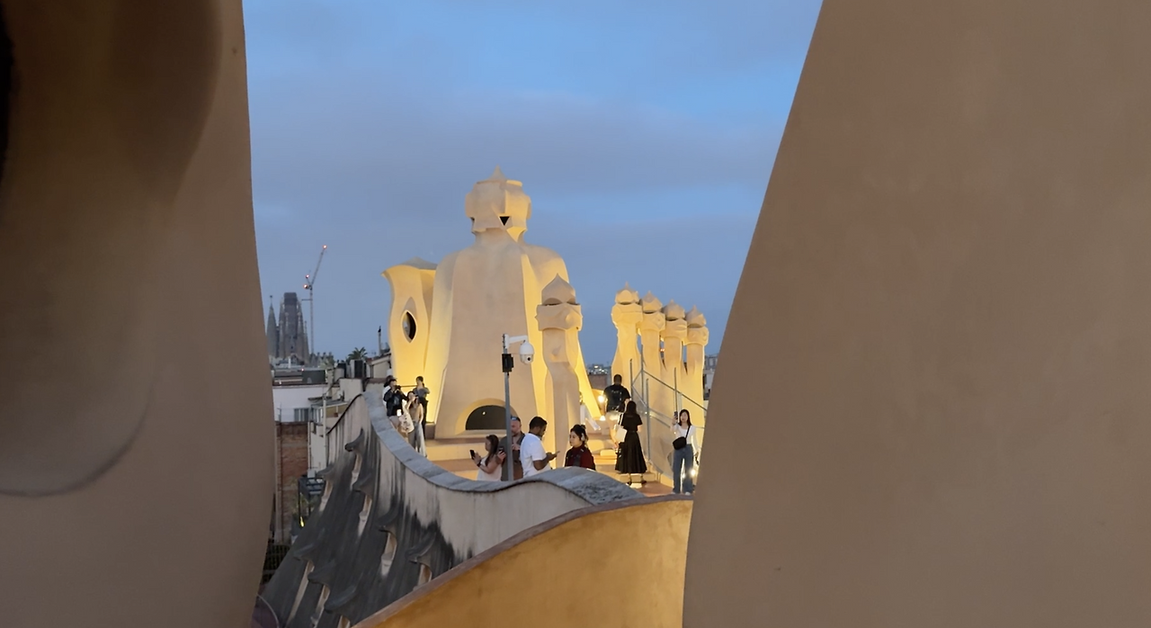 멀리서 봐도 가우디의 예술적 혼이 깊이 깃들어 있는 듯하다. 나무 같고, 꽃 같고, 하늘 같고, 바다 같기도 하다. 자연을 품은 이 건축물 앞에서, 나는 또 한 번 감탄을 터뜨렸다.