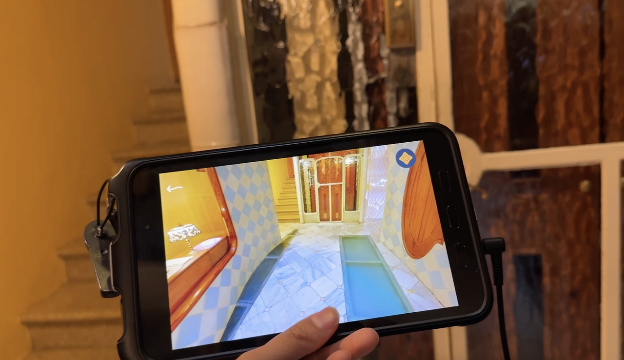 장소로 이동할 때마다 설명이 나오는 오디오 가이드로 관람 중