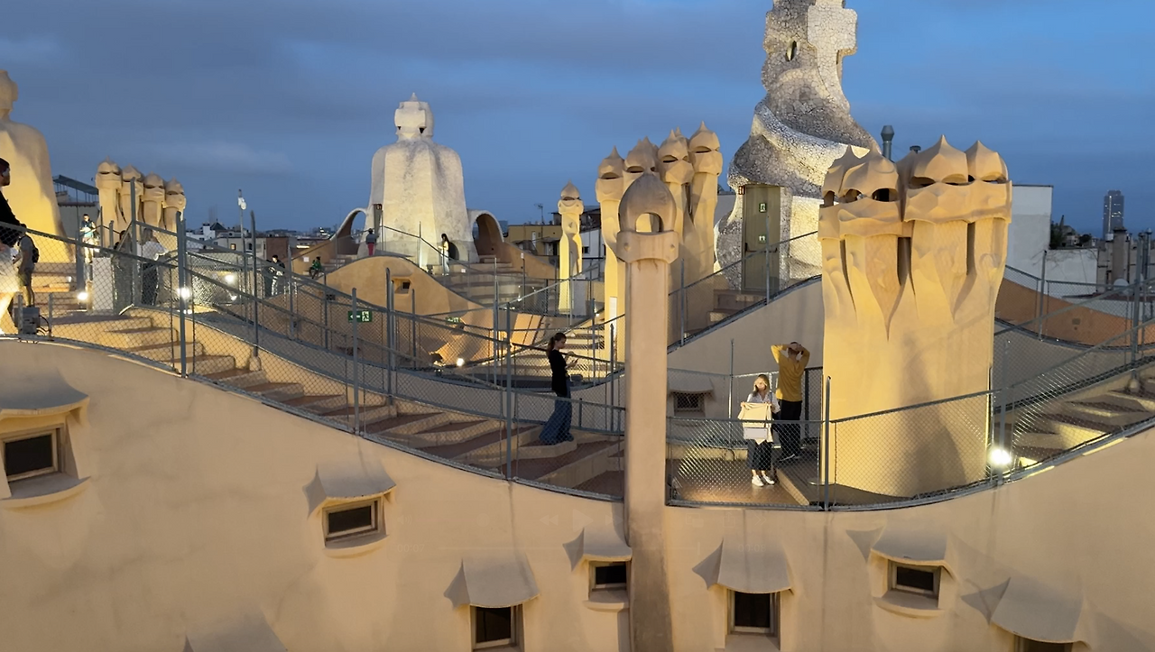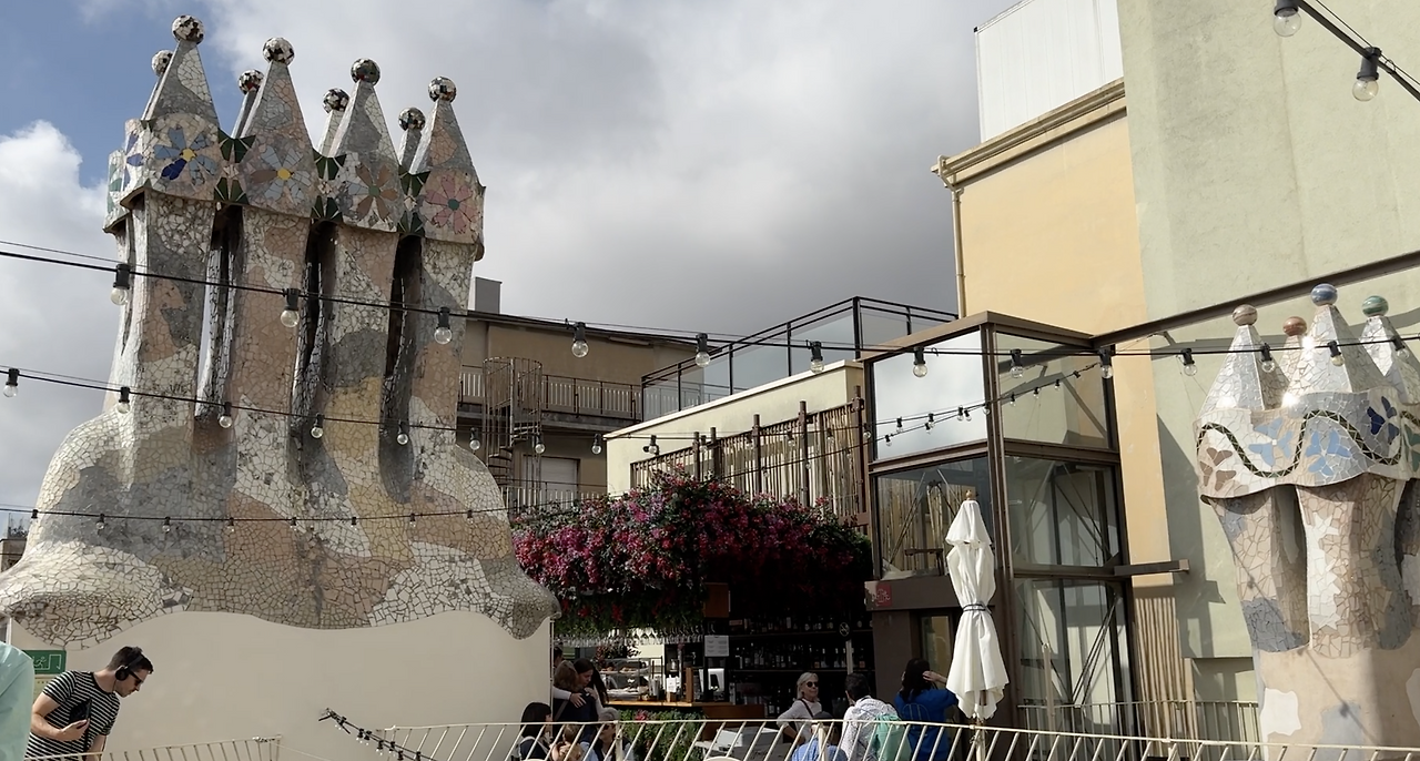 옥상이 하이라이트인데 마치 전사들의 헬멧을 닮은 조형물로 이루어져 있다. 단순한 기능적 요소조차 예술적으로 해석한 가우디의 장인정신을 엿볼 수 있다. 바닥 자체도 평평하지 않고 울퉁불퉁한 곡선으로 되어있다.