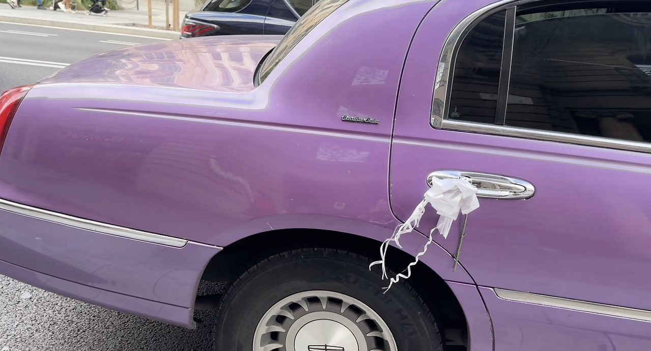 유니크한 보라색 리무진도 봤다. 흰색 리본을 보니 웨딩카인가 보다. 뉘신지 모르지만 결혼 축하드립니다.