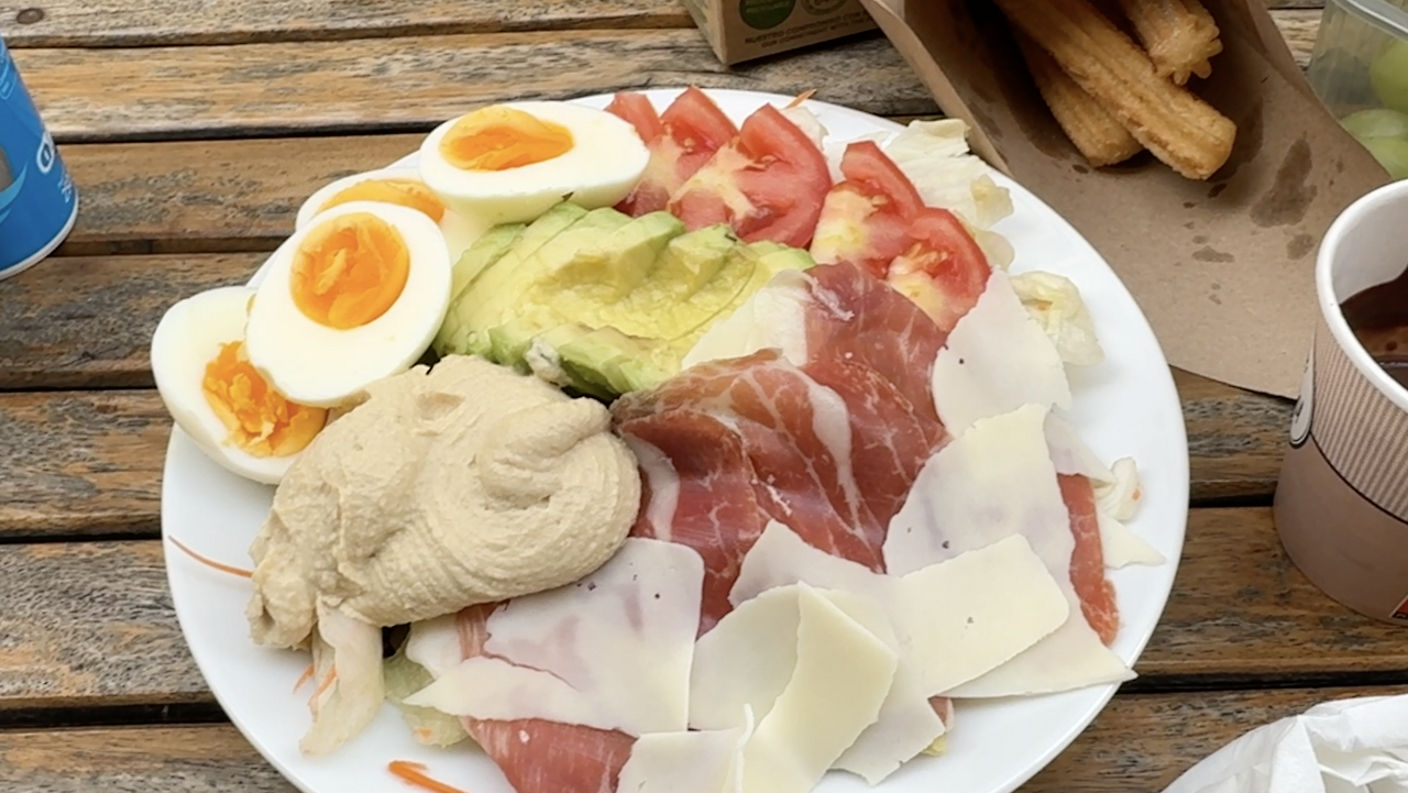계란도 반숙으로 익히고 아보카도, 토마토, 하몽, 치즈, 후무스. 하루 종일 걸으며 돌아다녀 배가 고파서 샐러드 한 상 거하게 차려먹었다.