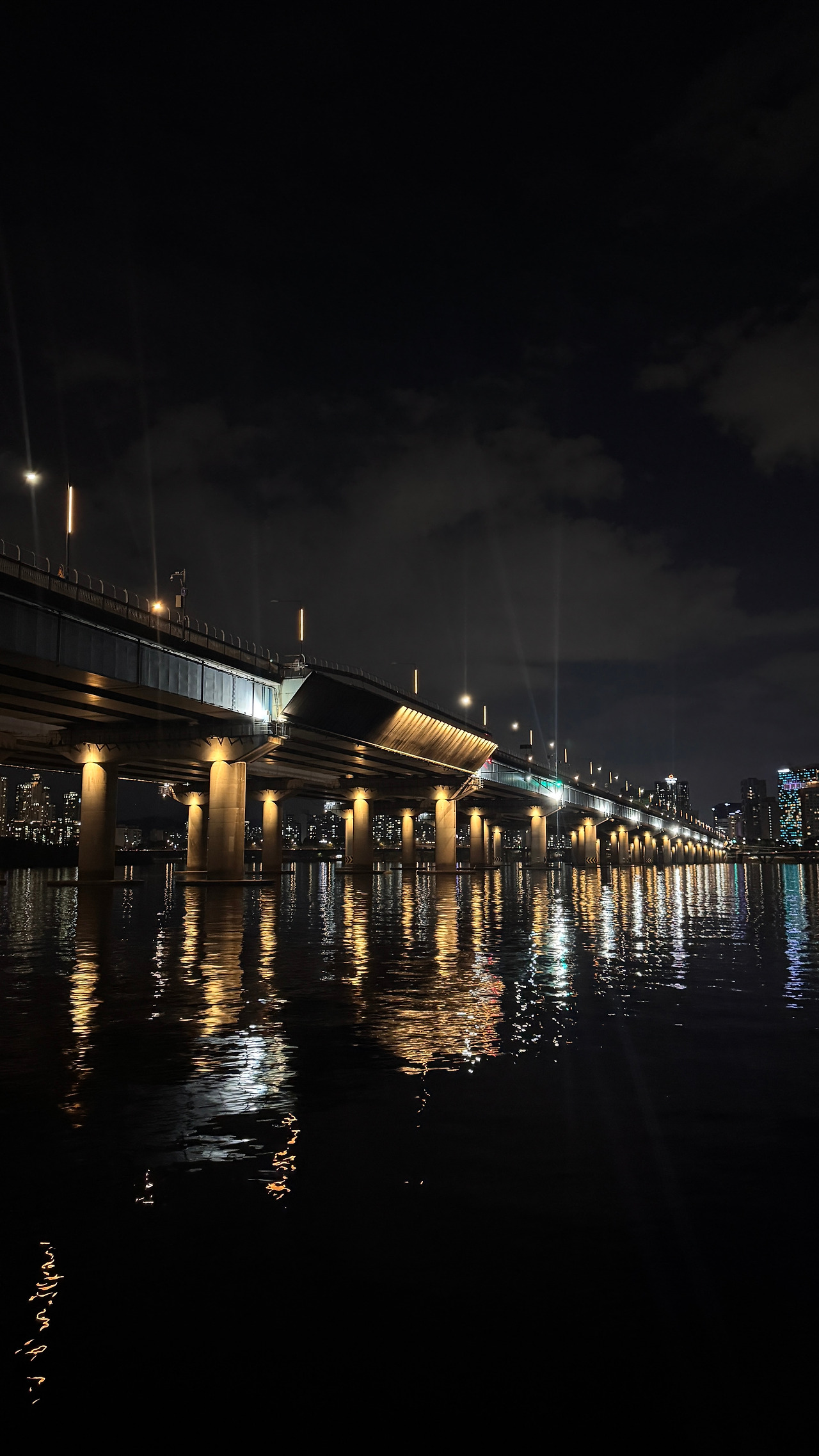 마포대교를 건너 반대편에선 차들이 쉴 새 없이 달리고, 고층 건물들엔 불빛이 가득했다.