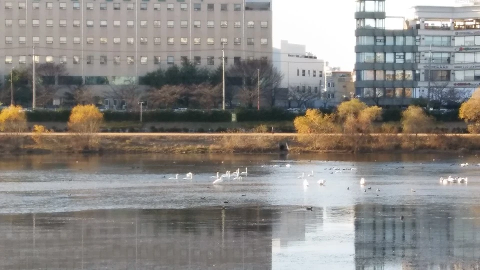 억새의 흔들림과 강물의 수런거리는 소리는 햇빛 속을 걷는 나에겐 음악이 된다. 강 위로 하얀 덩어리들이 떠 있다. 봄이 채 오기도 전에 자취를 감췄던 백조가 노닐고 있다. 그 옆에는 저 어미에 저런 새끼가 있을 수 있을까 싶을 정도로 어두 칙칙한 새끼들이 떠 있다. 전에 백조는 마음씨가 참 곱네! 어떻게 오리들과도 잘 어울리나. 했는데 알고 보니 어린것들이었다.