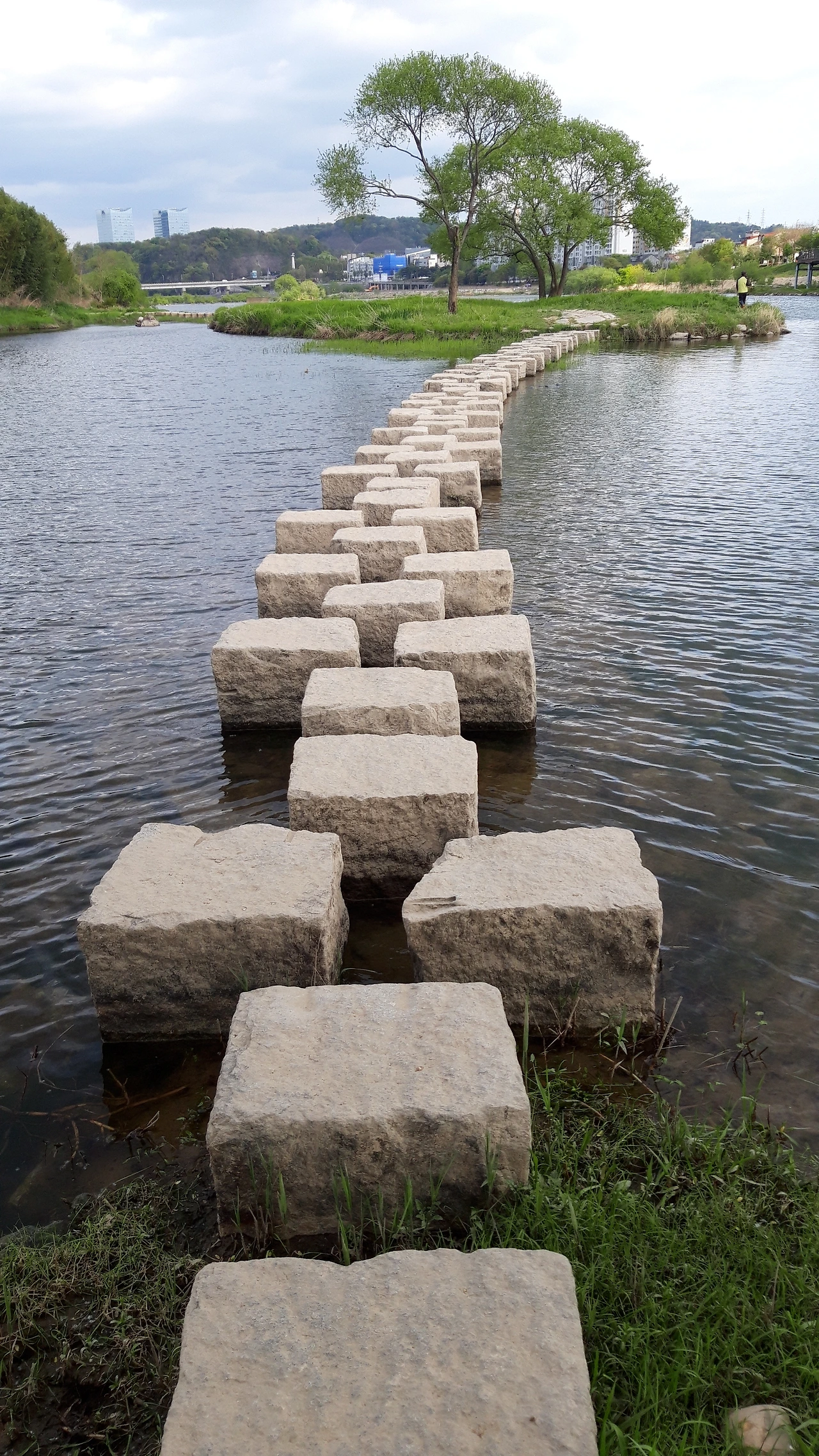 징검다리 속으로 걸어 들어가면 그 어릴 적 돌다리를 처음 마주했던 날이 자연스레 떠오른다. 어린아이가 건너기에 돌과 돌 사이가 너무 멀었던. 주먹 꼭 쥐고 힘껏 뛰었던 그때에 다시 서는 것이다. 이제는 넉넉히 건널 수 있건 만 옛날로 순간 이동을 하는 듯 조심스럽다. 한 개 한 개 쭈뼛거리며 건넌다. 다른 생각을 안 하고 몰두한다. 한 때의 기억은 참 오래도록 나를 가둔다. 살금살금 밟아온 다리를 건너와 뒤 돌 아다보면 삐뚤거리지도 않고 그 자리에 멈춰 선 것들이 가지런해 보인다. 내일 또 거닐 곳이지만 마지막인 것처럼 아련하다.