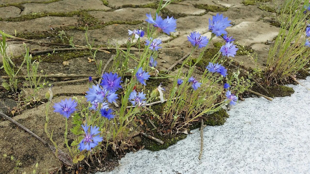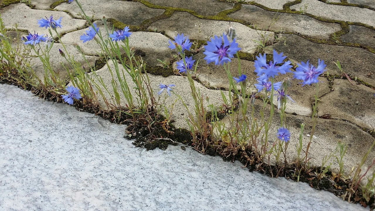 꽃씨가 살기 좋은 곳만 찾아서 떨어지는 것은 아닌가 보다. 보도블록 그 좁다란 틈새에서 싹을 틔우고 키 낮은 수레국화를 피워 올렸다. 앙증맞은 꽃송이를 보니 은은한 감동이 마음에 얹히운다. 작은 것에 대한 애착이다. 차차로 소소한 것들을 더 애틋해하니 자신에 대한 연민 인지도 모른다.