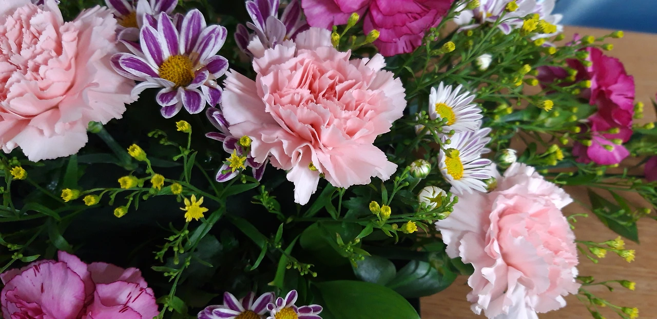 꽃의 여왕이라고 하는 장미도, 감사를 품 안에 간직한 카네이션도 지들끼리만 있으면 뭔지 모르게 헤린 느낌이다. 마무리로 소국과 쏠리스타나 유칼립투스를 만나면 꽃들이 자연스레 살아난다. 아무리 예쁜 꽃이라도 돋보이게 해주는 것들로 인하여 활짝 피어난다.