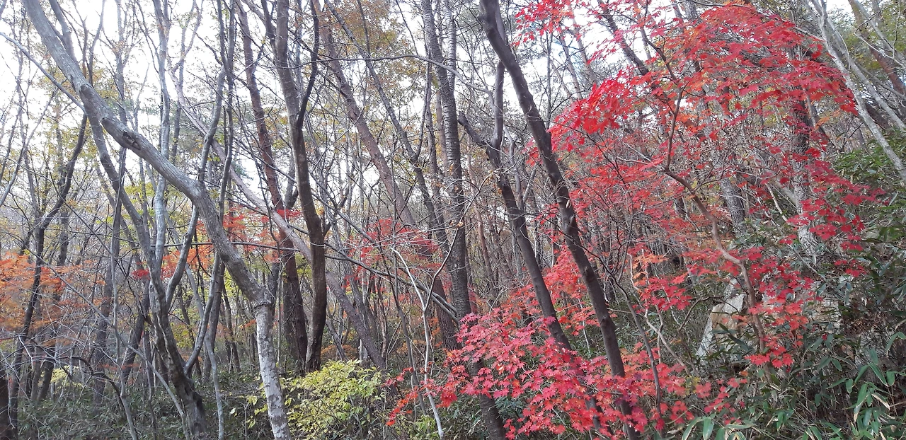 햇빛이 쏟아지자 언제 눈앞을 가렸느냐는 듯이 안개는 걷혔다. 호수가 보이고 가을 산이 자기 여기 있었다고 말을 건네 오는 듯하다. 산을 뭉뚱그려 보면 색색으로 수놓아진 커다란 수틀이지만 숲길을 들어서면 초록 잎들 사이사이 단풍들이 가을꽃으로 펴 있다. 돌돌돌 흐르는 개울물소리가 맑은 악기 소리 같다는 생각이 든다. 사부자기 걷는 길이 고요롭고 산새 소리 물소리가 한없이 정겹게 다가온다.