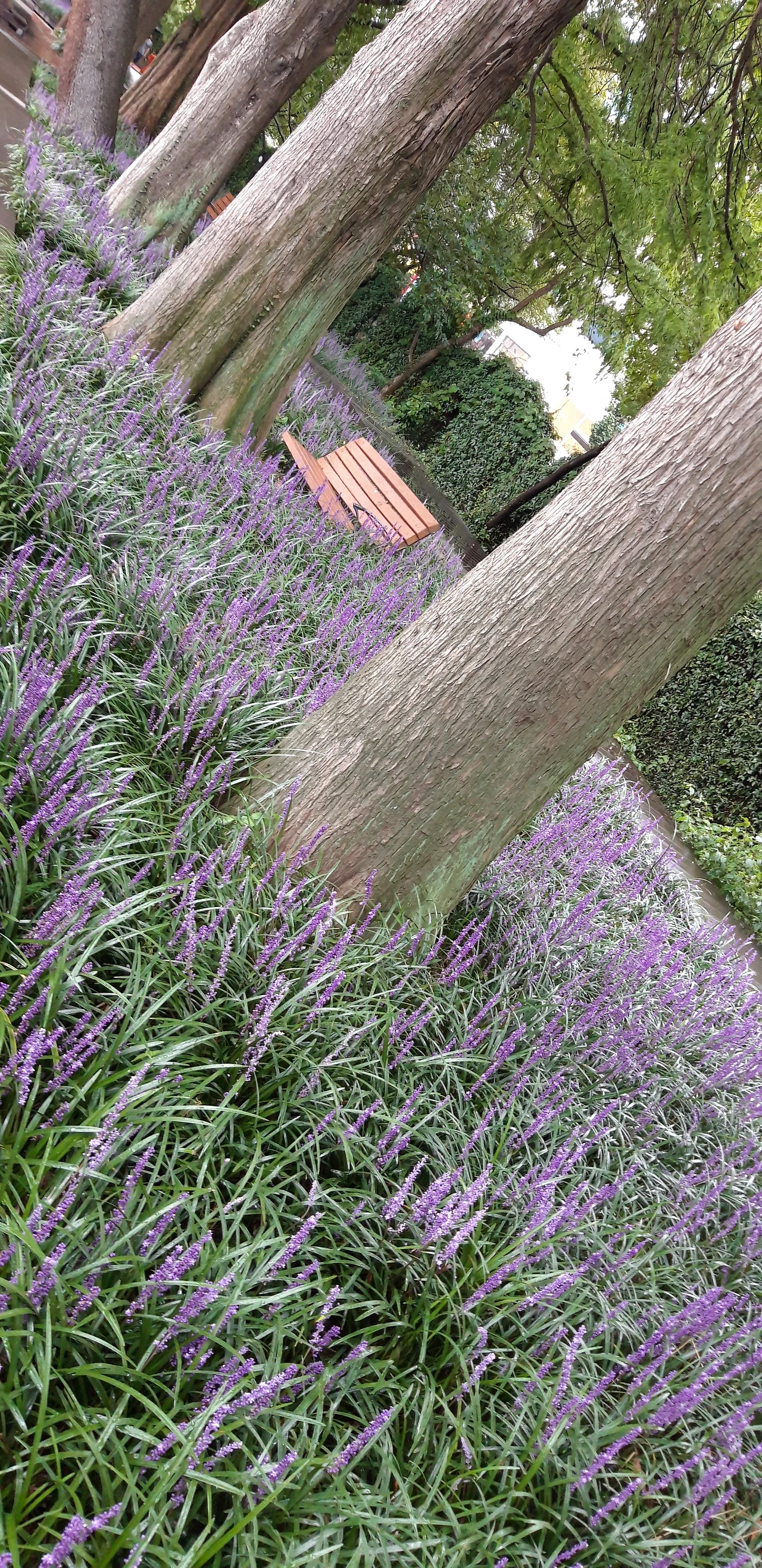 계절은 가을로 거듭났다. 햇살이 비추는 곳의 맥문동들은 연두 빛의 열매를 달았거나 꽃 색이 옅어졌다. 아름드리나무 밑은 맥문동 꽃 숲이 되었다. 지중해의 라벤더 밭 부럽지 않다는 생각은 어쭙잖은 것일지라도 학교 뜰에 신비를 품고 피어난 꽃무리에 반할 수밖에.