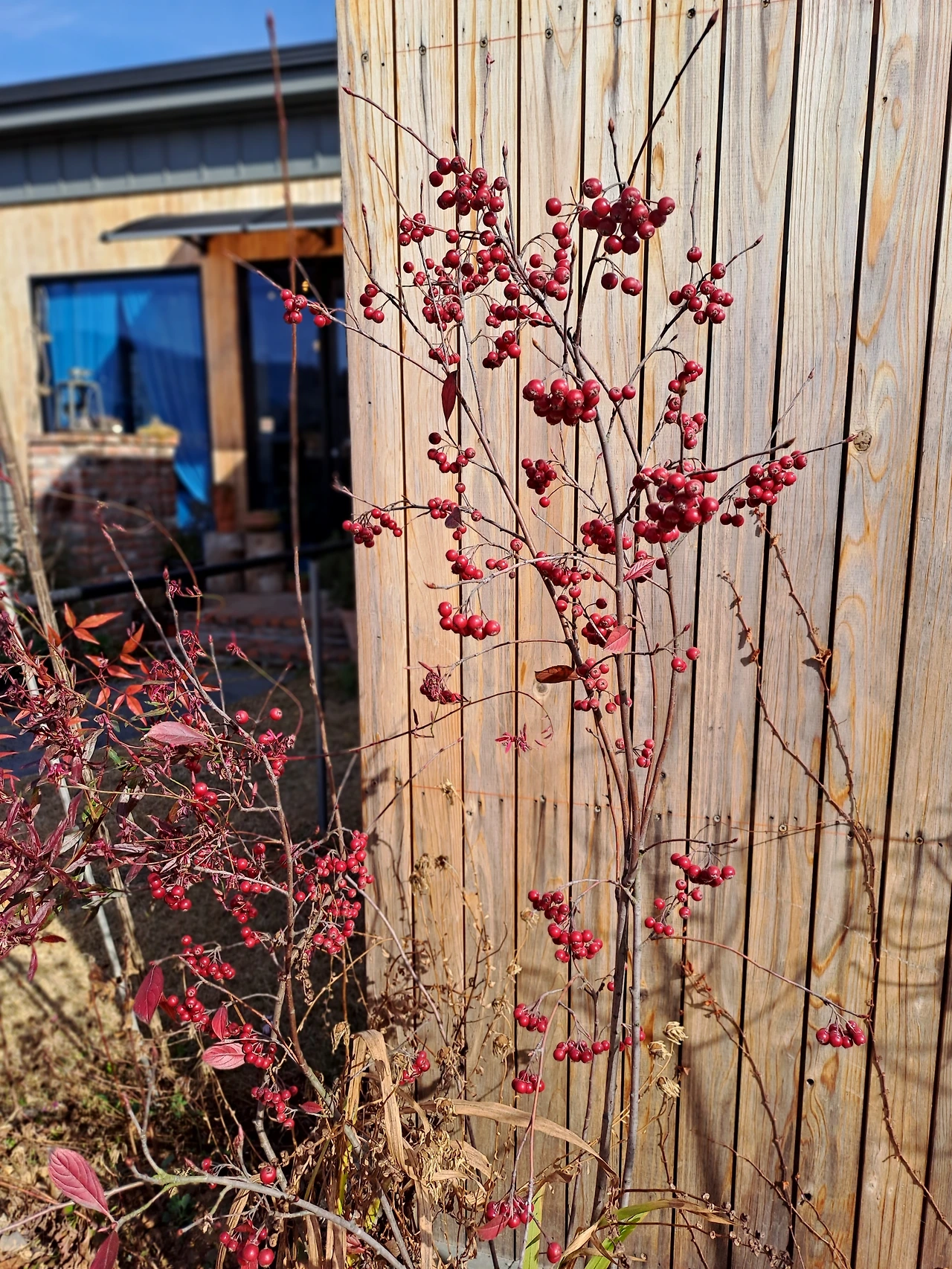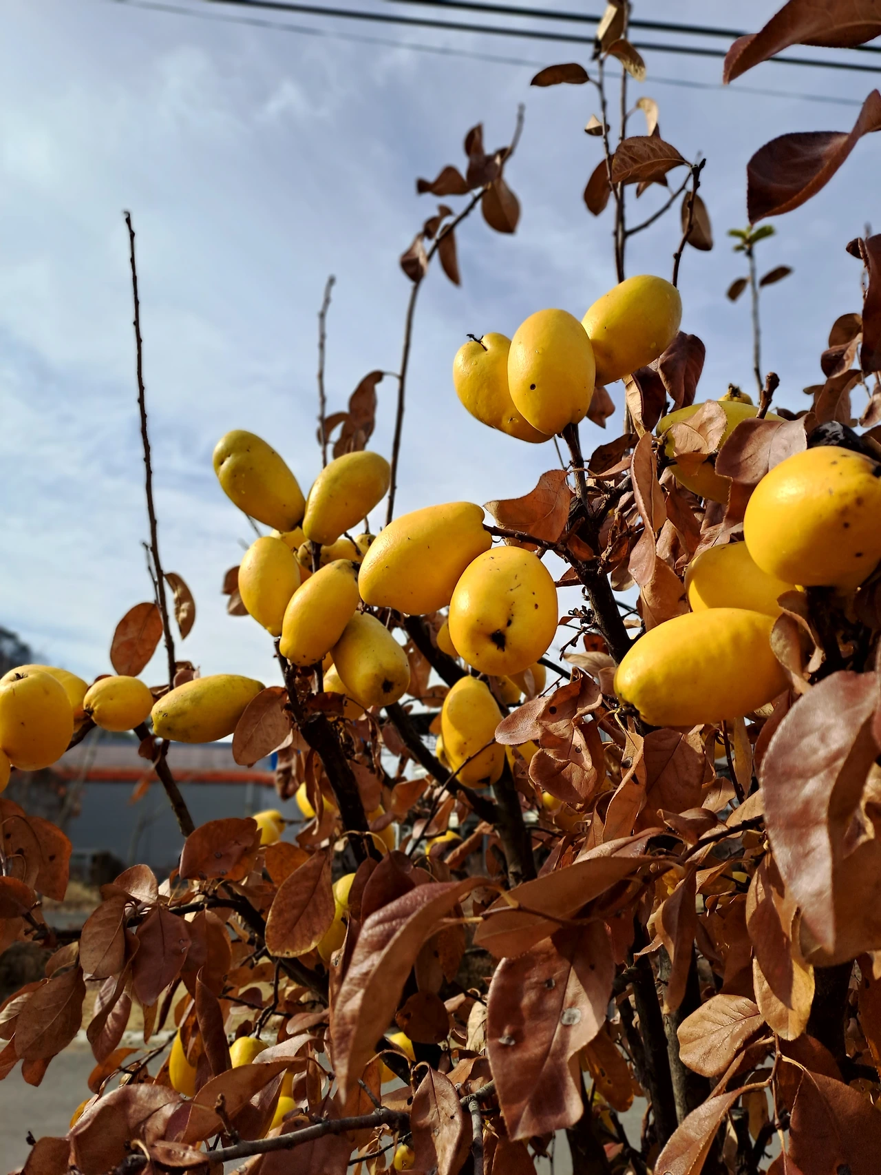 눈송이들을 바라보고 감탄을 자아내고 노란 모과가 주렁주렁 열린 나무에 놀란다. 이렇게 말갛게 물이 든 모과는 여러 해 만이다. 버들 마편초와 에케네시아가 마지막 꽃을 피워내느라 안간힘을 쓰는 모습이 애처롭다.