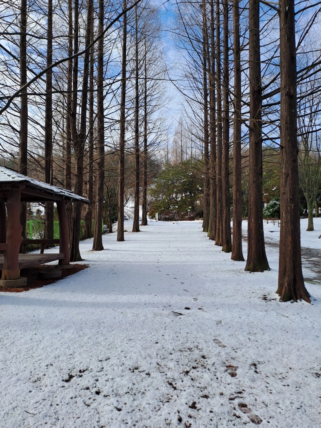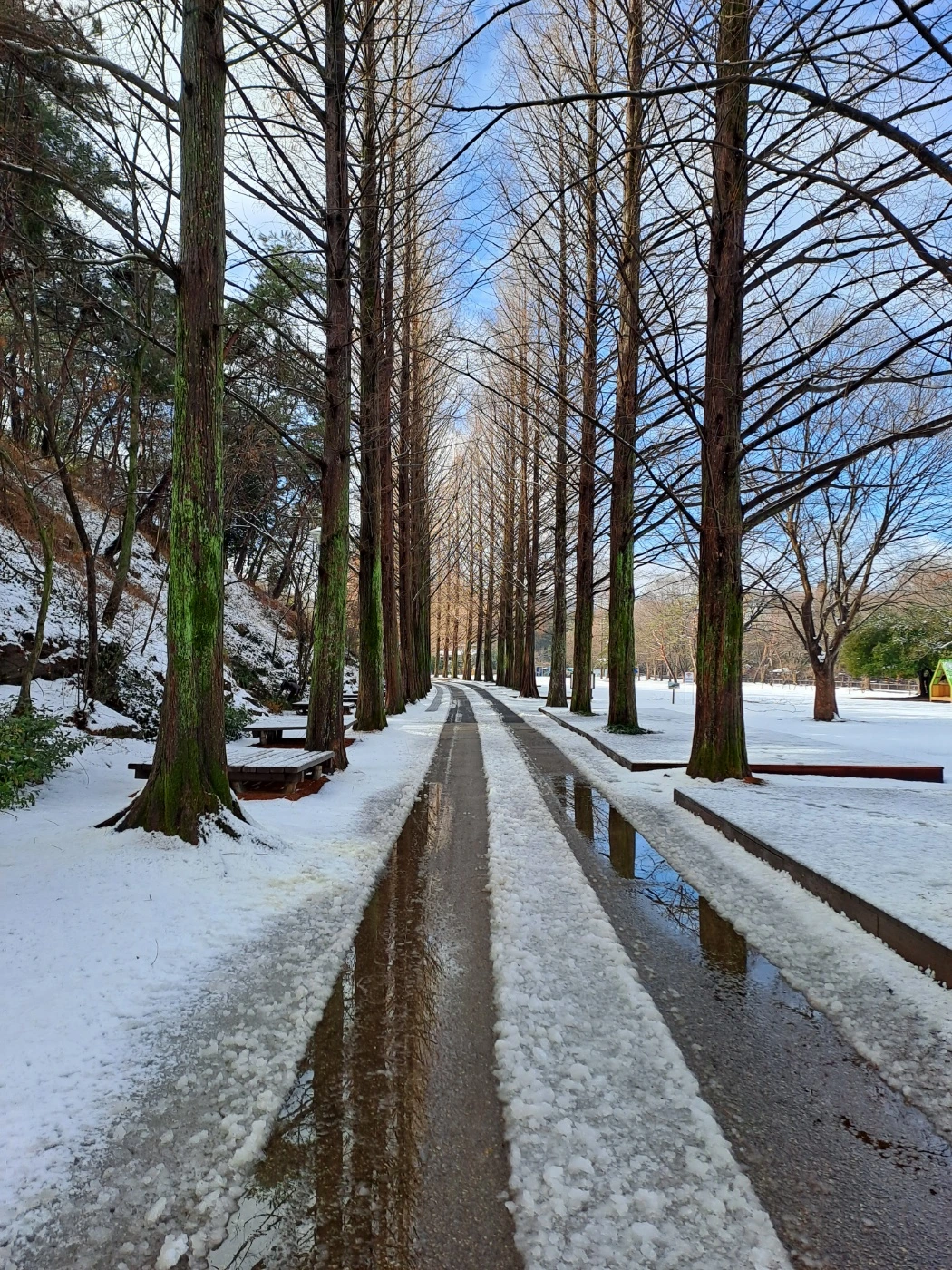 식물원에 도착했는데 기대했던 것들은 내려놓아야 했다. 벌써 눈이 녹아내리고 있다. 아쉬운 대로 후원 같은 곳을 사부작이 걷고 메타세쿼이아 길을 산책한다. 눈싸움을 하면 좋을 것 같은 너른 광장을 마주한다. 눈사람을 만들고, 눈을 뭉쳐 남편에게 던지거나, 남편 목덜미에 집어넣고자 하는 열정은 시들해진 지 오래다. 거니는 것과 바라보는 것으로 만족한다. 두 군데의 커피 집에 사람이 없다. 눈이 잘 오지 않는 지방이라 눈길이 겁나서 아예 출근을 하지 않은 것 같다. 기념하는 사진을 몇 장 남긴다. 하얀 세상을 더 붙들어 놓고 싶은 마음이 간절하다. 다시 몇 년을 또 기다려야 할까? 안타까움이 배가되는 눈 오는 날이었다.