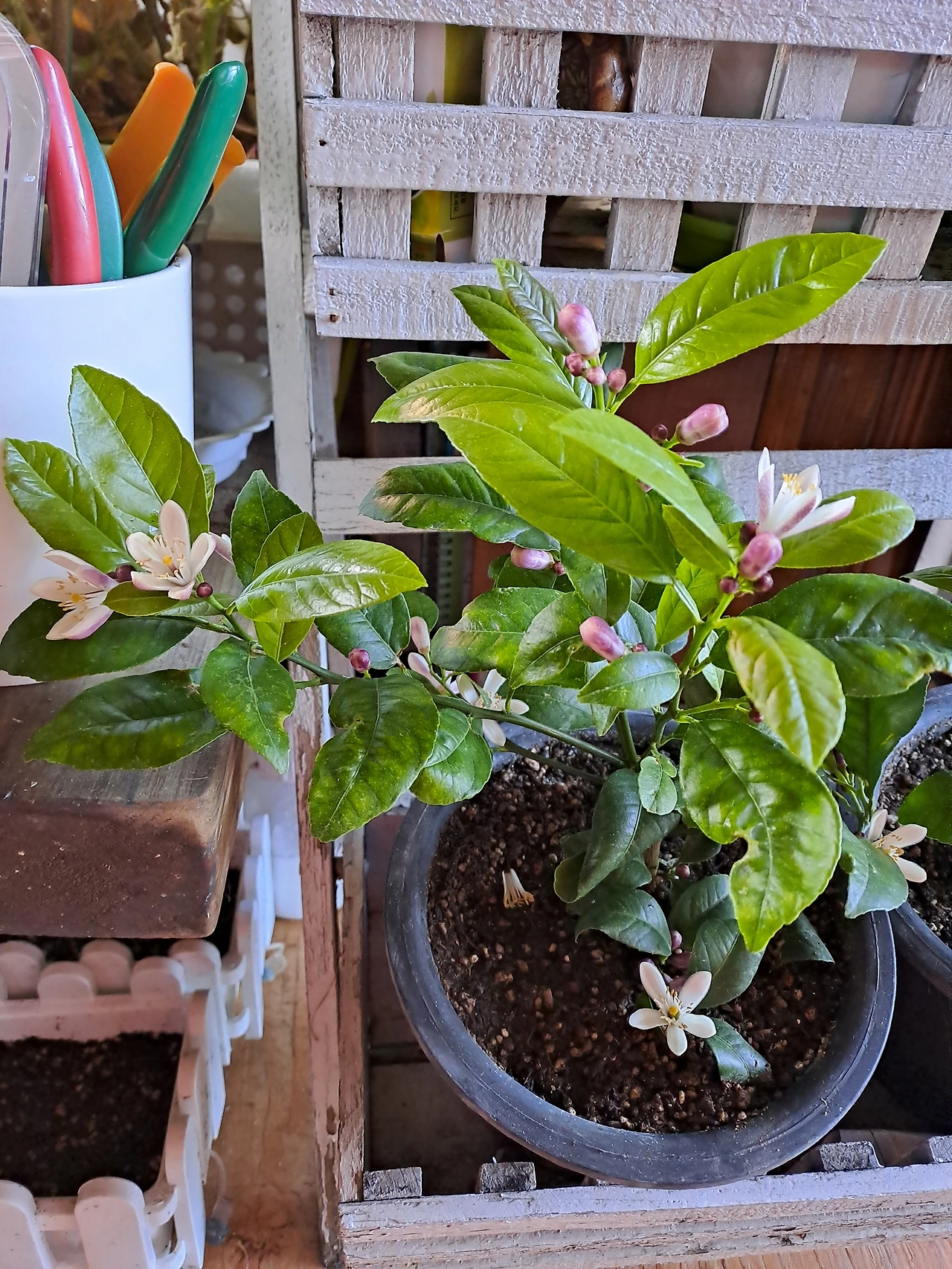 이번 주에는 레몬나무를 두 그루 들였습니다. 레몬이 열려 있는 나무를 볼 때마다 키우고 싶었는데 드디어 기회가 온 것이지요. 가격도 괜찮고 상태도 좋아서 만족하고 있습니다. 보라와 흰색이 어울린 꽃이 피어서 왔습니다. 코를 들이대면 향기가 진합니다. 잘 키워서 가을에는 노란 레몬을 보여 드릴 수 있기를 기대합니다. 구해놓은 인산칼슘 비료도 조금 주었습니다. 꽃이 핀다고 다 열매가 맺히는 것이 아니더라고요. 작은 화분일 때는 더욱 그렇습니다. 나무들은 자기가 키울 만큼만 남기고 풋것들을 떨어뜨립니다. 열매를 붙들 수 있는 힘을 길러 주어야겠습니다. 열매 달리는 나무를 여럿 키워 본 것은 아니라서 더 말을 하면 혼날 것 같아 그만하렵니다.