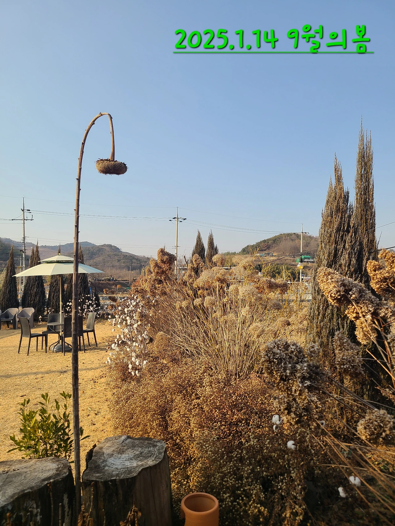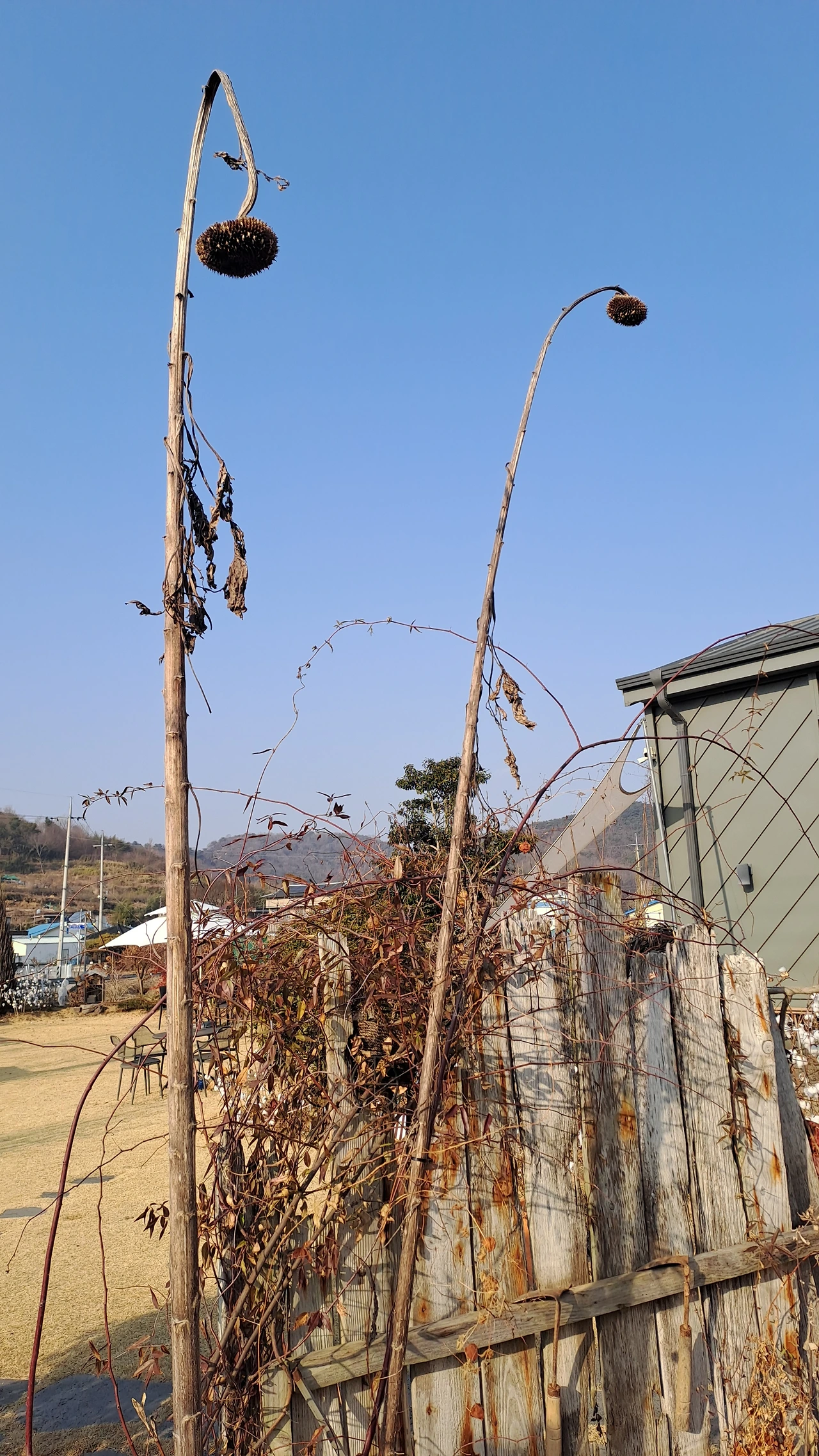 그곳에는 계절이 그대로 묵혀있다. 과거를 품고 있어 더 끌리는지도 모른다. 대궁만 남은 해바라기는 가로등 같이 우리를 내려다본다. 풍선초 마른 것들도 바스락 거린다. 연두 빛 작은 풍선처럼 부풀어 오른 모양으로 설레게 하더니 앙상한 그림자로 겨울바람을 맞는다. 까만 씨에 하트를 그리고 있어서 신기한. 지나간 계절을 품고 있는 뜰을 바라보는 것은 어쩌면 우리의 모습을 되비추고 있어서 애틋한 것은 아닌지.