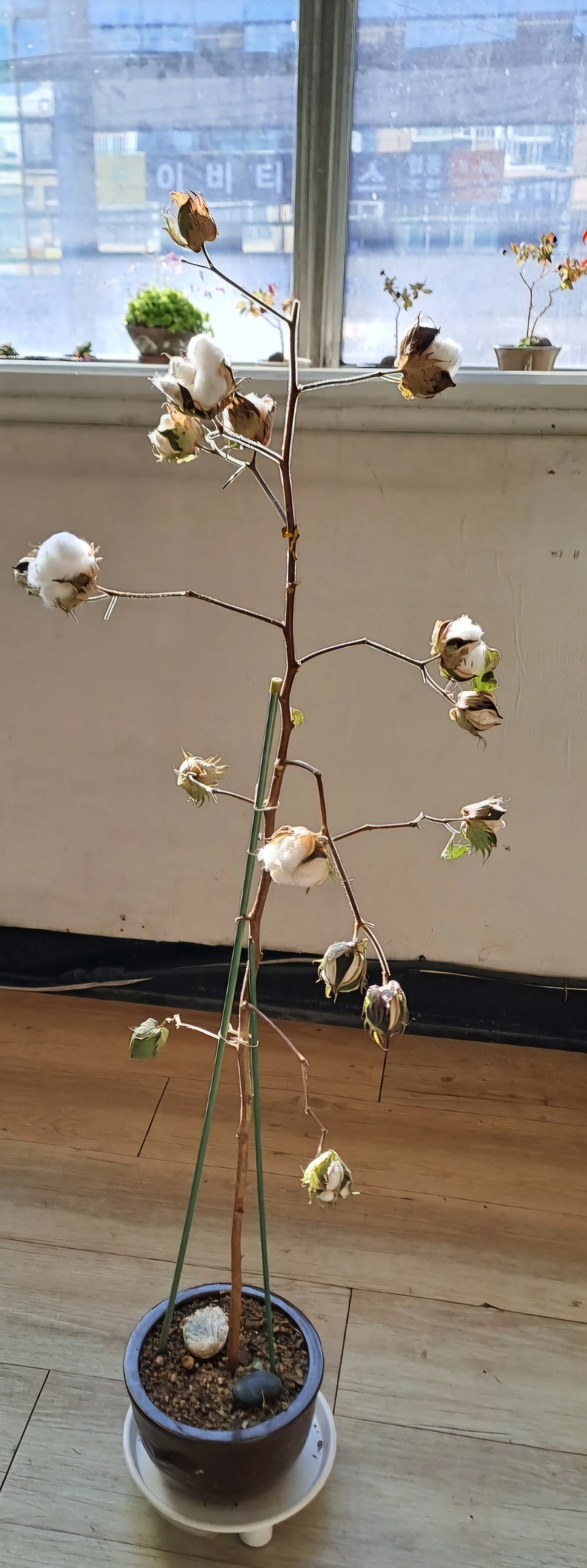 식물이 지지리 맘에 들지 않을 때는 순간의 감정에 못 이겨 패대기치듯이 싹둑 잘라내 버리면 속은 시원하다. 눈앞에서 보기 싫은 것을 바로 치우는 것만큼 쉬운 것이 없듯이. 나무를 키우면서 참아내는 자세를 조금 익혔다. 식물을 키울 때 기다려 준 것에 대한 보답은 받는다. 그들의 생리를 잘 이해하고 돌봐주는 것이 꽃을 키우는 사람의 일이다. 새해에 다시 목화 꽃 키우기에 도전해보려 한다. 꽃다발 같은 목화솜을 듬뿍 달아 주기를 바라면서.