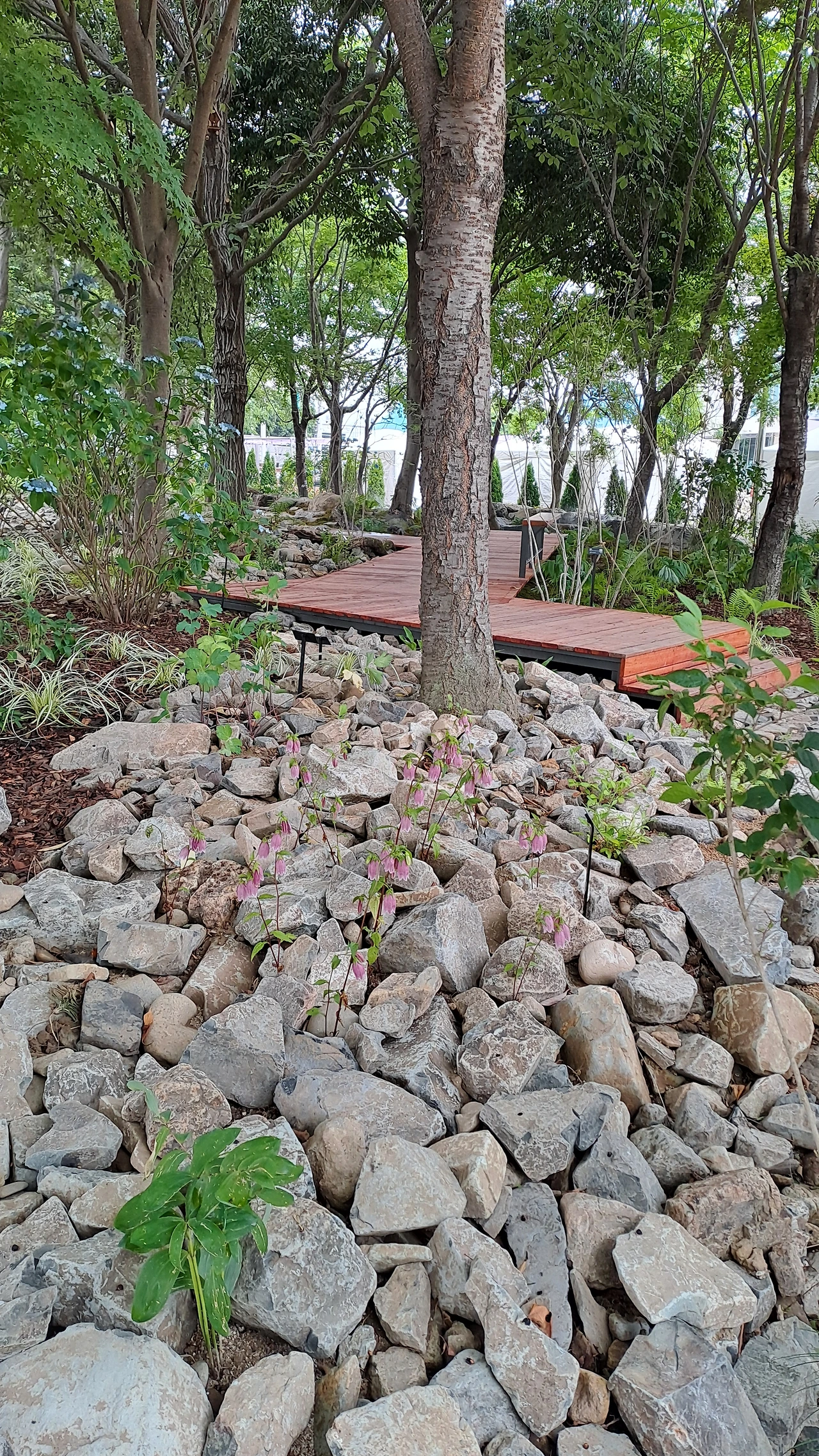 안개처럼 뿌려지는 물이 이끼를 적신다. 그늘정원이다. 냄새가 난다고 아예 가까이하지 않았던 어성초 꽃이 드문드문 돌 짝밭 사이에서 하얀 눈웃음을 던진다. 고 작은 꽃이 주는 기쁨에 설렌다. 나는 물고기 비린내가 나는 어성초가 싫었다. 식물에서 어떻게 그런 냄새가 나는지 이해가 안 되었기에. 지금은 피부와 탈모. 아토피에 좋아서 여러모로 활용이 되고 있다니 식물이 가지고 있는 가치는 아무도 모르는 일이다.