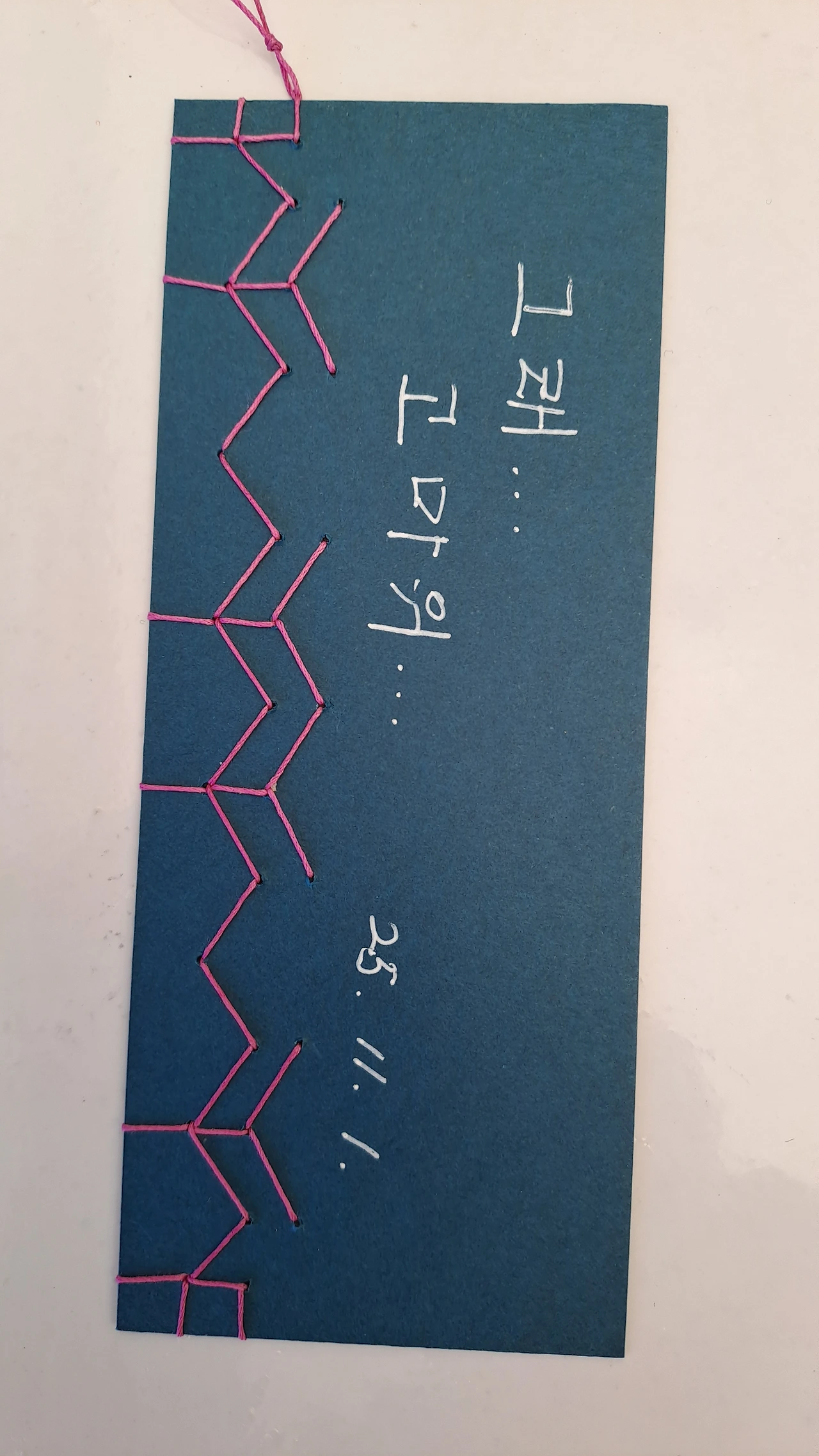 그이는 책갈피에 들어갈 말을 이모저모 살피고 읽어보더니 그대로 내려놓는다. 마음에 와닿은 말이 없나 보다 했다. 그런데 ‘그래 고마워’를 쓰고, 다른 페이지에 ‘그래 그렇구나’를 썼다. 순간 나는 멈칫했다. 누구에게 한 말일까? 공감과 고마움을 하나의 책갈피에 적는 모습이라니. 자기 자신에게 한 말일까. 아님 가족에게. 또는 벗에게. 꼭꼭 여미고 있던 말을 꺼내 한 뼘도 안 되는 네모난 종이에 옮겨 적으며 되뇌었을 마음이 들어가 박인 것 같다.