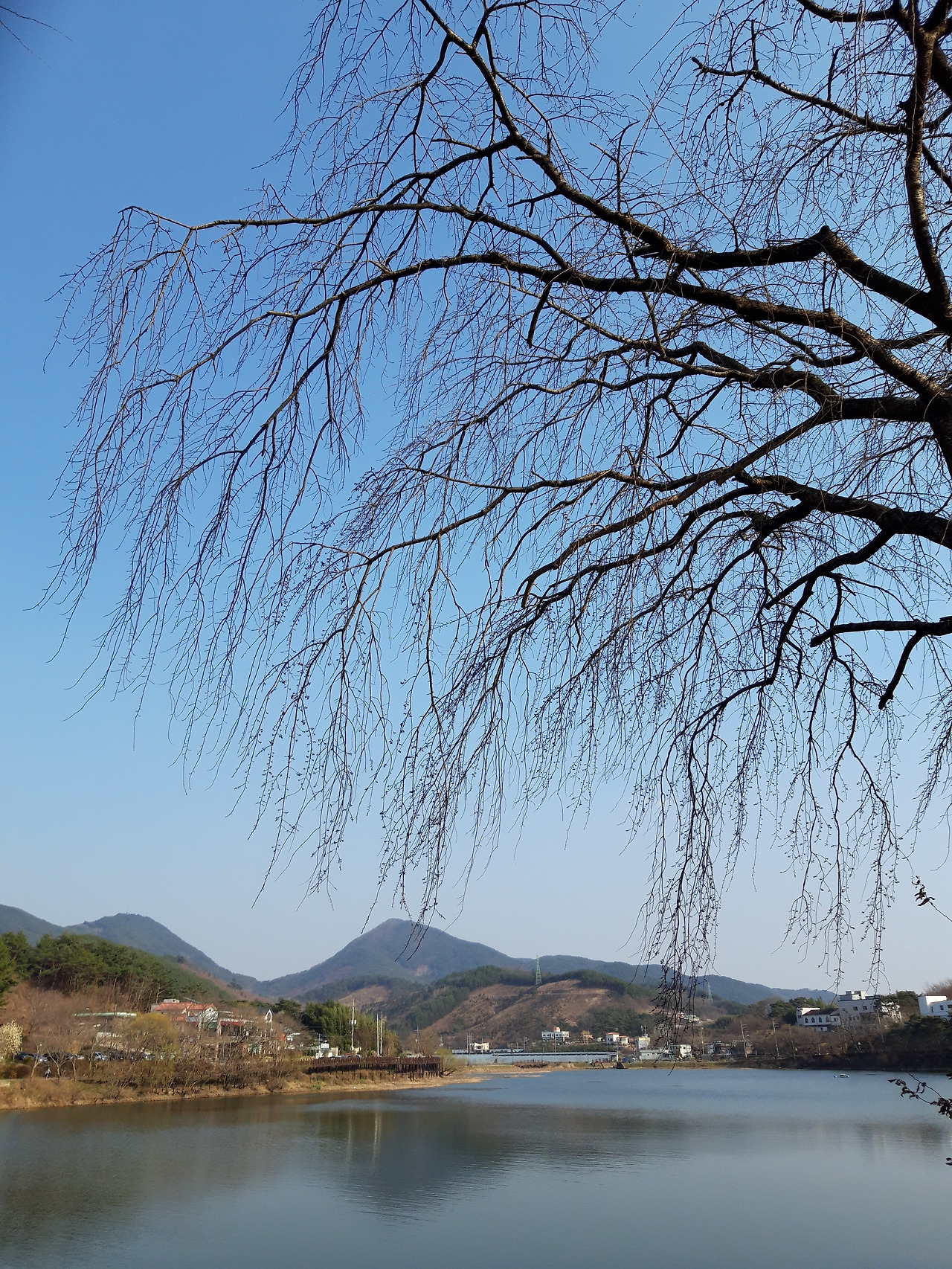 호숫가에 벚나무들이 가지를 길게 물 끄트머리까지 늘어뜨린다. 손가락을 물속에 집어넣으려는 듯 내민다. 물고기를 낚기 위해 꽃 낚시 대를 드리운 것 같기도 하고, 꽃 피는 것을 자랑하고 싶어 가지를 뻗치나 싶다. 꽃눈마다 핑크빛이 선연해진다. 몇 주 뒤면 거침없이 꽃송이를 터칠 것 같다. 바람 속의 봄기운이 스미었을까. 꽃이 피어나는 것은 기쁨이다. 다시금 뭔가를 시작할 수 있다는 외침이다. 가슴이 부듯해진다.
