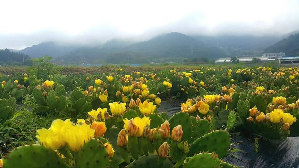 밭 위에는 외지인들이 정년퇴임을 하고 집을 지어서 들어와 산다. 주차장으로 쓴다고 밭을 달라고 어머니에게 말을 넣어 보낸다. 고향에 내려 올 형제가 있을 수도 있고, 누가 살더라도 밭은 필요하다고 했다. 욕심은 끝이 없는 걸까. 벌을 치고 꽃으로 밭둑마다 띠를 두르고 저 끝 간 데까지 과실 수들이 솟구쳐 있는데. 빨래를 말려놓으면 가시가 날아와 옷 속에 들어 있다가 바늘처럼 찌른단다. 천년초 농사를 짓는 분이 괜찮다고 했는데. 노인정 앞이라고. 담장 있는 집도 가깝다고. 노란 꽃이 피어나면 관광지가 된 듯이 사람들이 사진을 찍는 것을 보고 동네 어르신들이 좋아한다고. 열매가 빨갛게 익으면 한번 더 벌어지는 함박웃음들. 어머니를 통해서 천년초를 없애라는 마을 사람들의 성화가 들려온다. 이미 처리하겠다고 이야기해 놓았는데도. 꽃 한번 못 보고 뽑아야 하는 안타까움. 노랗게 핀 꽃들 사이로 해맑은 나의 웃음은 지어지기도 전에 스러지는구나. 우리 땅인데도 맘대로 못한다.