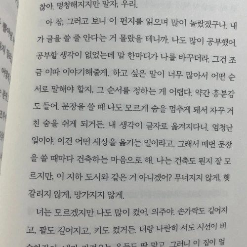 '내 생각이 글자로 옮겨지는 것, 이건 어떠한 큰 세상을 옮기는 거야. 마치 건축을 하는 것처럼'