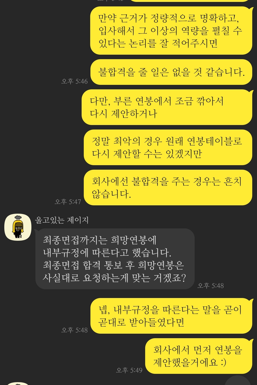 - 최종 합격 이후 희망연봉 제안을 요청받은 상태