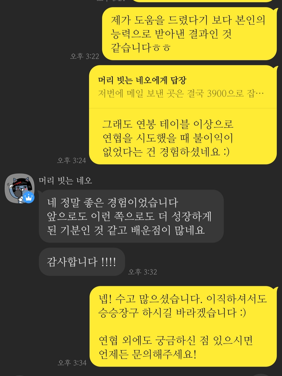 제가 뭐 대단한 사람은 아니지만, 도움드릴 수 있는 선에서 최대한 도움드리도록 하겠습니다 :)