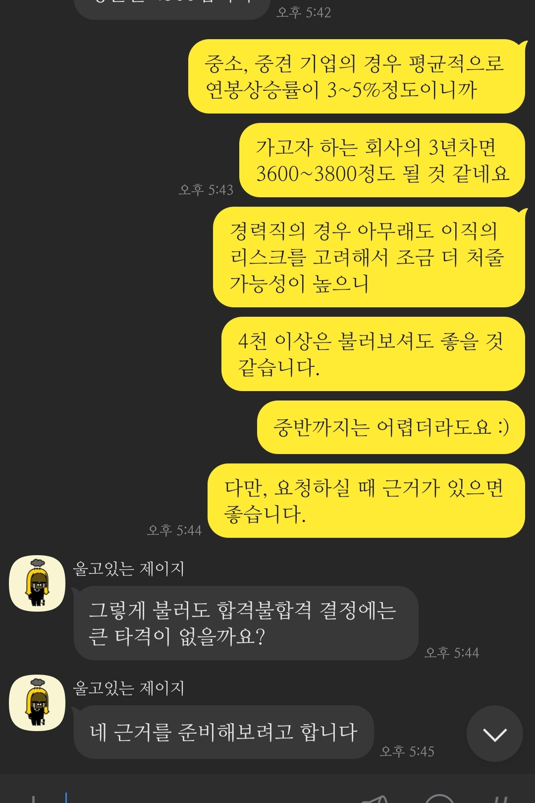 4,000만~4,500만 원의 희망 연봉을 권해드렸습니다.