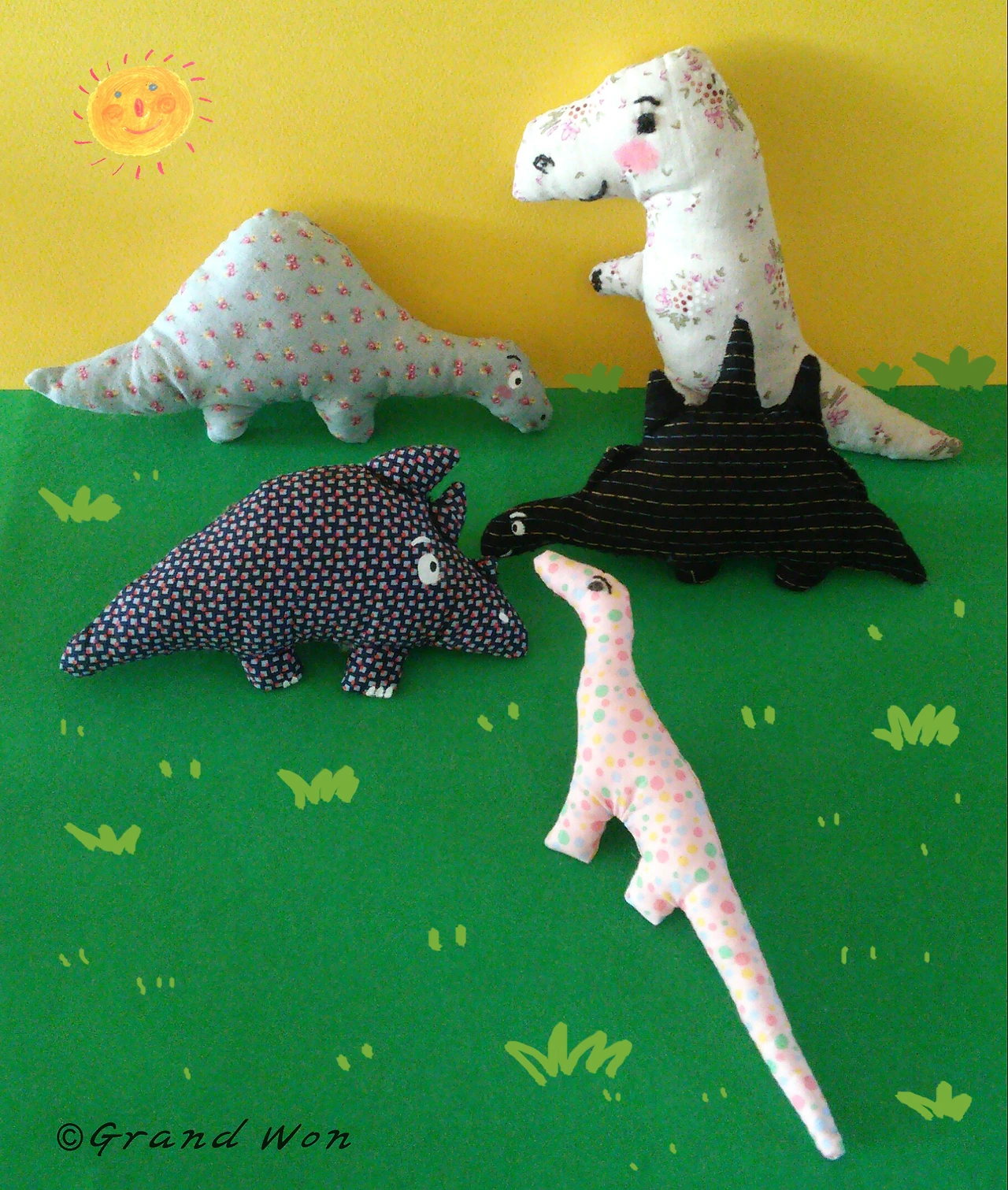 손바느질 공룡인형들..
