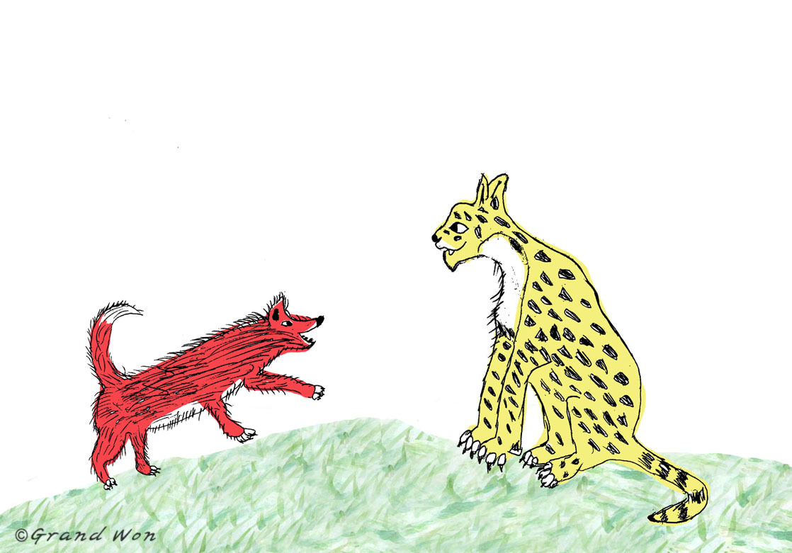 멋진 표범은 지나가던 붉은여우를 불렀어요.