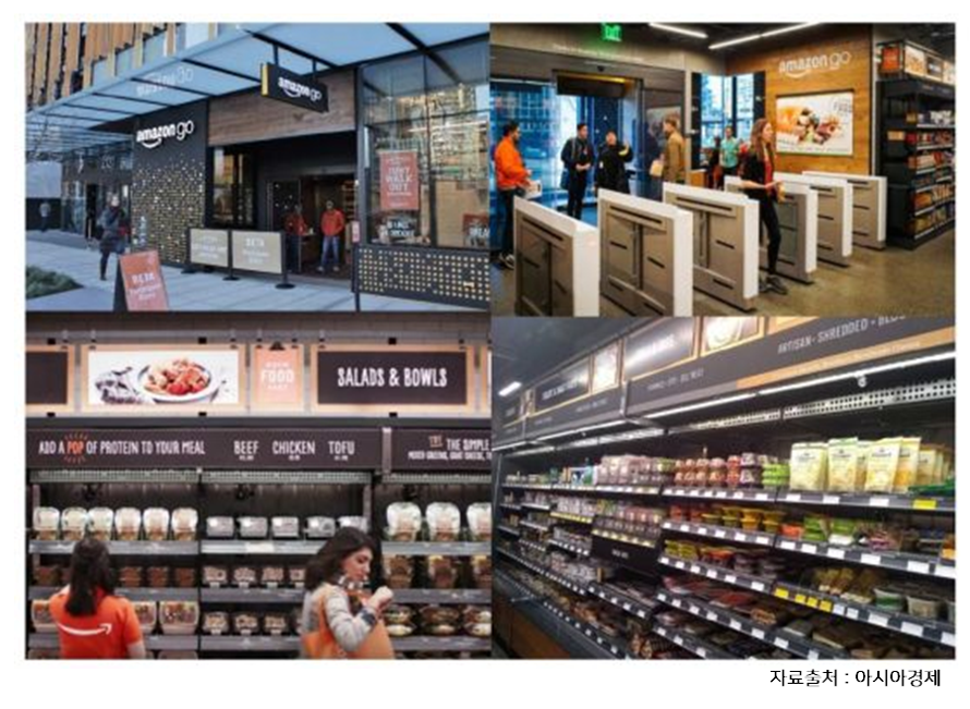 아마존고는 글로벌 유통기업 아마존이 시애틀에 오픈한 오프라인 식료품 매장이다. 아마존고의 특징은 계산대가 필요 없는 매장이라는 점이다. 아마존고 앱을 켜고 매장 입구를 지나가면 아마존 계정을 고객을 자동으로 인식한다. 이후 고객이 매장에서 쇼핑을 하는 동안 매장 내 카메라와 센서는 어떤 물품이 선반에서 꺼내졌는지를 추적하고 해당 제품을 들고 고객이 매장을 나가면 별도의 계산과정 없이도 아마존 계정으로 금액이 청구된다. 센서가 부착된 원형 카메라가 고객의 동선을 파악하고 손동작을 인식해서 진열대에서 꺼내는 제품을 고객의 아마존 계정 장바구니에 자동으로 추가하는 기술이다. 이처럼 다양한 기술을 활용해서 계산대 없는 매장을 가능하게 했으며 이는 결제 과정에서의 편의성을 높여 고객 경험을 증진시킨 사례라고 할 수 있다.