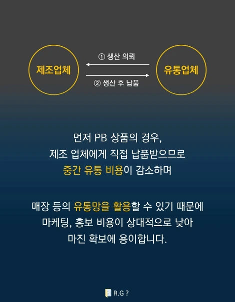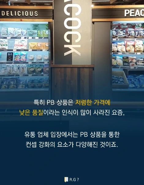 개인적으로 생각하는 PB 확대 전략은 유통업 중에서도 '편의점, 대형마트'에서 중요한 전략이라고 생각한다. 쿠팡의 탐사, 티몬의 236 등 이커머스에서도 PB를 런칭했지만, 편의점과 대형마트는 주로 매장을 통해 판매가 이루어지는 업태인 만큼 제품력이 소비자 방문을 확보하는데 중요한 역할을 하기 때문이다. 유통업의 발전과 함께 가격 경쟁력 및 NB 브랜드의 구성만으로는 경쟁력을 갖추기 어렵기 때문에 이 브랜드 혹은 매장을 가야 구매할 수 있는 제품을 뜻하는 PB의 성공은 경쟁력으로 이어지기에 충분하다고 생각한다. 또한 PB에 대한 소비자들의 기대가 높아진 만큼, PB에서의 경쟁력은 저렴한 가격을 기반으로 한 차별화된 컨셉과 품질이 될 것이라고 생각한다.