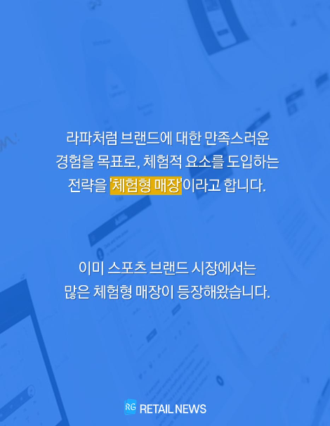 라파처럼 브랜드에 대한 경험을 목표로, 체험적 요소를 도입한 매장을 '체험형 매장'이라고 한다.