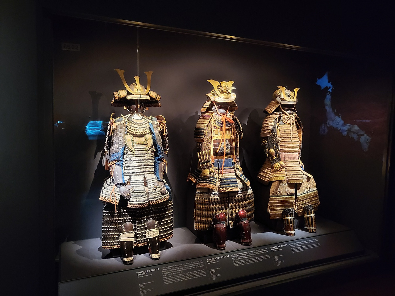 일본관에 전시된 일본 무사의 다양한 갑옷
