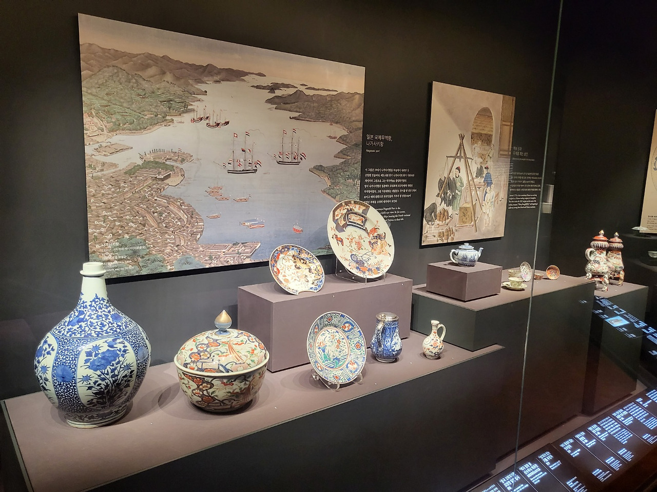 일본의 국제무역항 나가사키를 묘사한 그림과 일본의 채색자기