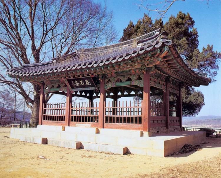 파주 율곡 3리에는 임진강을 품고 있는 정자, 화석정이 있습니다. 아찔한 벼랑에 자리한 화석정은 입이 떡 벌어질 만큼의 절경을 자랑합니다. 물감을 풀어놓은 듯한 푸른 산의 능선 아래로 임진강이 굽어 흐르는 호젓한 풍광을 이이도 참 좋아했습니다. 병치레가 잦았던 그는 자주 벼슬을 내려놓고 화석정에서 머물곤 했다고 합니다.