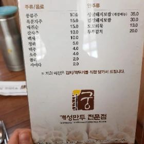 가격은 필자가 먹었던 만둣집 중에서 가장 높았다. 개성만두찜(고기만두) 11,000원. 개성김치만두찜 13,000원, 개성버섯만두찜 (비건 만두) 13,000원, 모둠만두찜 14,000원으로 메뉴당 6알의 만두가 나온다. 포장할 시에는 좀 더 저렴한 가격으로 먹을 수 있으니 가격표를 참고하면 좋을 것 같다. 필자는 모든 메뉴를 먹어보기 위해서 모듬만두찜을 주문했다. 한 가지 특이했던 것은 고기만두의 가격보다 김치만두의 가격이 높았던 것인데 김치를 직접 담가서 사용하기 때문에 가격이 더 비싸다고 한다. 이외에도 다양한 메뉴와 함께 먹을 수 있는 술이 판매되고 있었다.