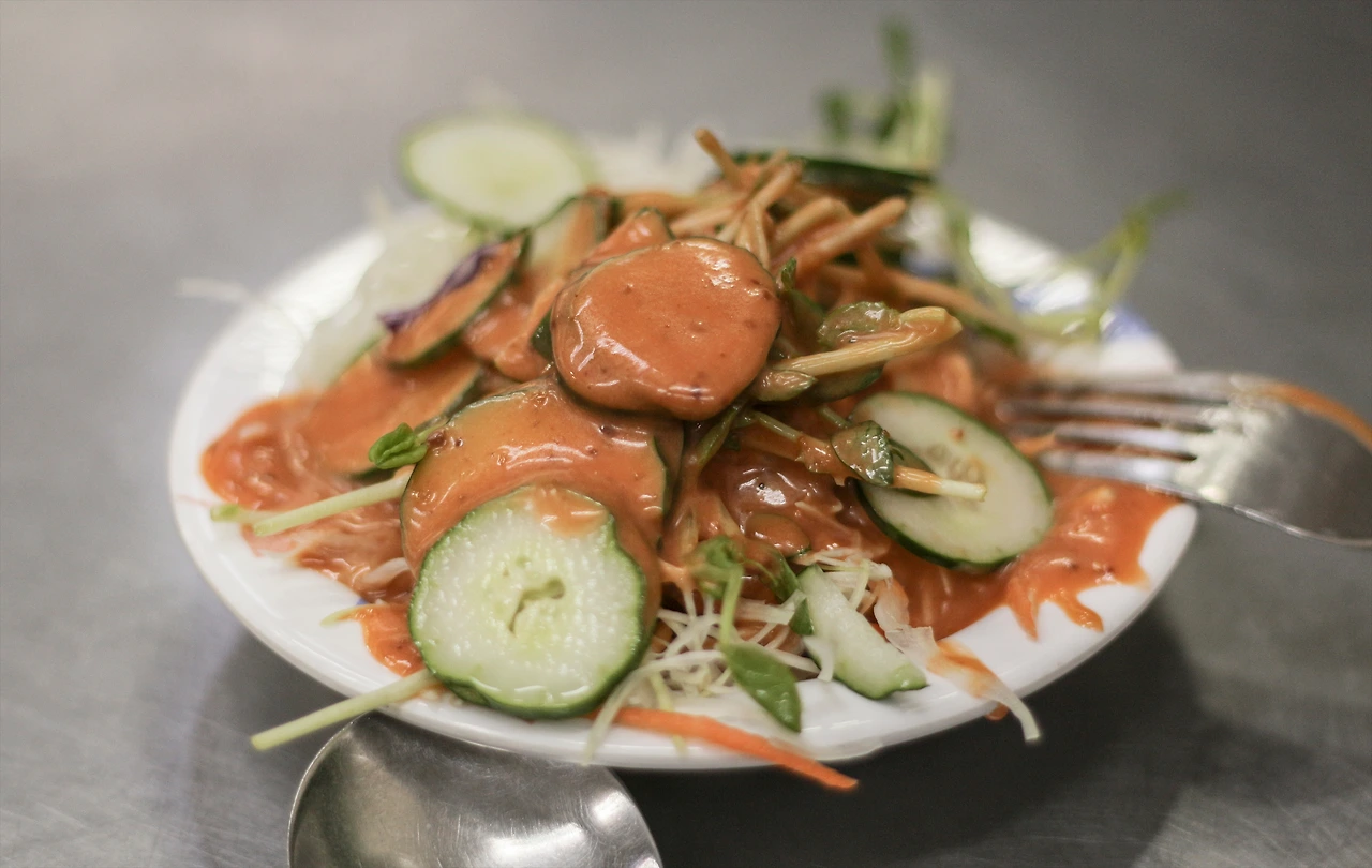 뷔페에서 본전 뽑겠다고 되지도 않는 용을 써본 적 있을 것이다. 그런데 여기라면 가능할지도 모른다. 한 무더기 쌓인 야채는 몇 번을 가져다먹어도 괜찮다. 땅콩의 고소한 향이 스며있는 양념과의 조합이 절묘한 덕분에 끝없이 입으로 가져가도 싫증이 나지 않는다.