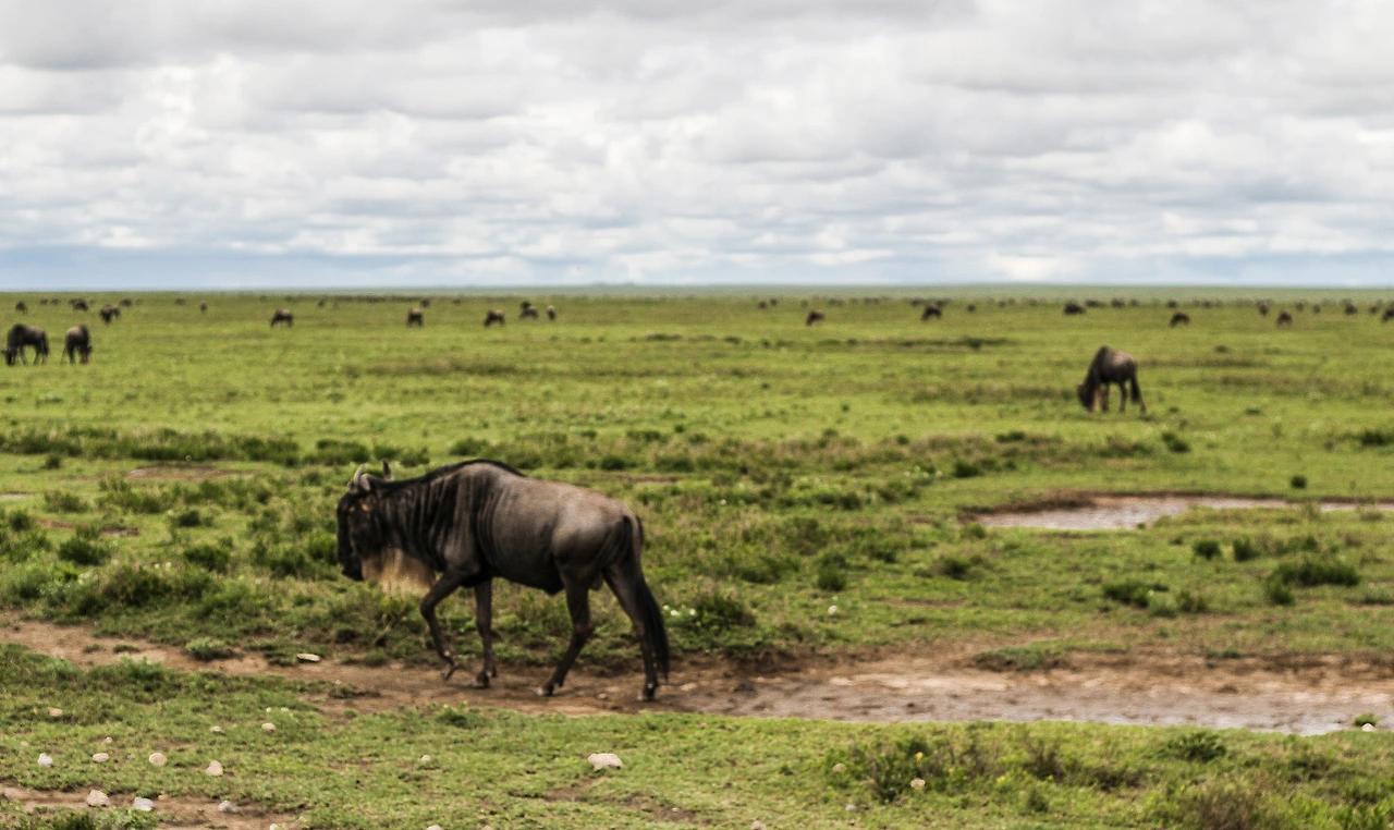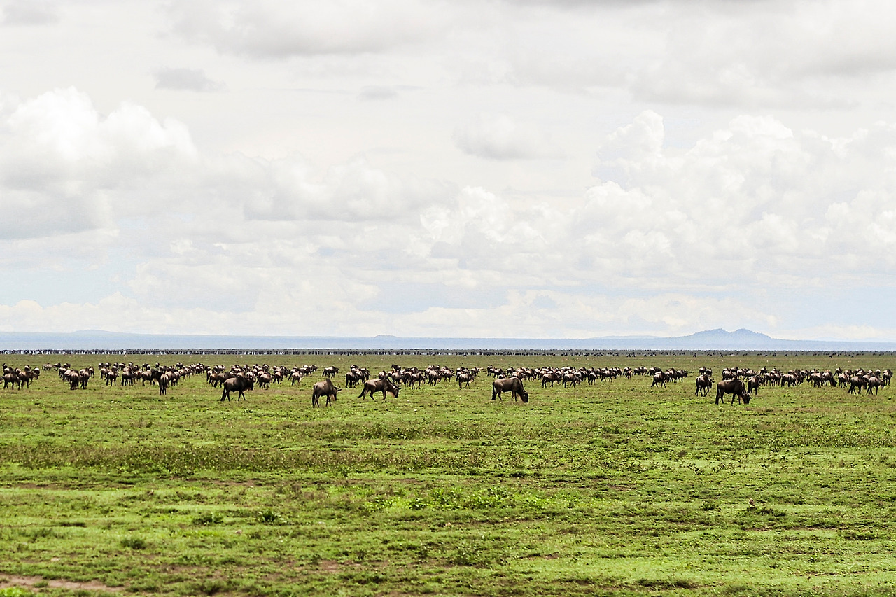 이 사진 속에 담긴 누는 세렝게티에 살고 있는 개체수의 5만 분의 1이 되지 않을 수도 있다. 문자 그대로 사방천지, 어디로 눈을 돌려도 누떼가 가득하다.
