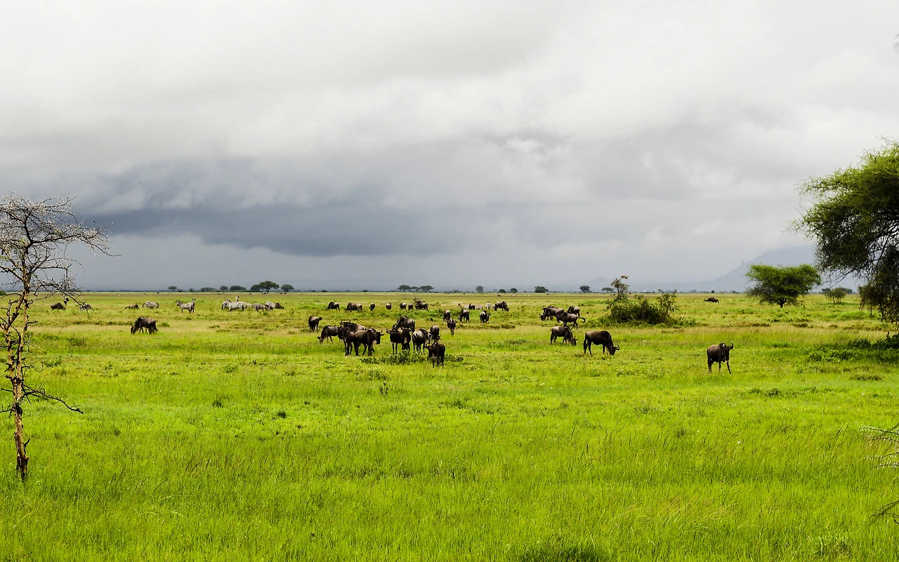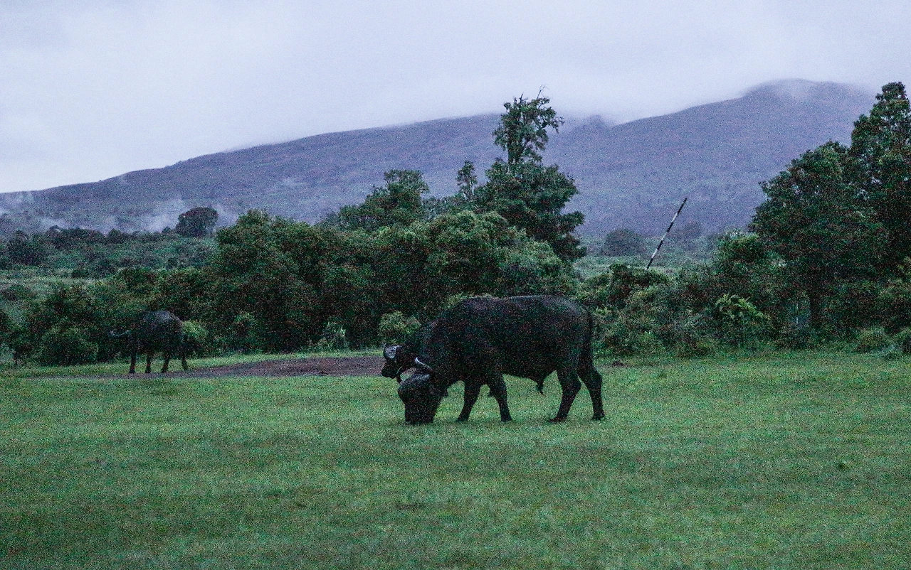 해가 떨어지면 풀밭은 버팔로들의 차지가 된다.