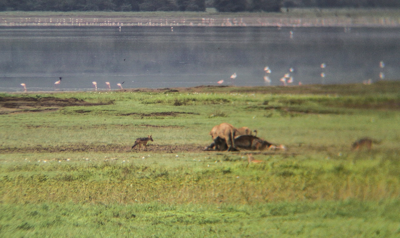 정작 그보다 덩치 큰 하이에나 무리들은 암사자의 눈치를 보기 바쁘지만 우리의 용감한 자칼들은 그런 눈초리 따위 아랑곳 않는다. 아마도 이곳에서 가장 배불리 먹은 녀석들은 자칼들이 아닐까 싶다.