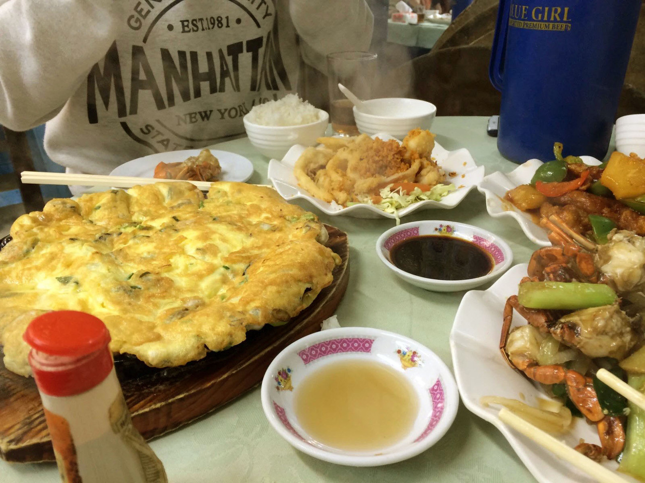 여기서 먹은 굴전이 아직도 생각난다. 계란 속에 굴을 쏟았나 싶을 정도로 재료를 아낌없이 때려붓는다. 맥주가 쉬지 않고 들어간다. 이 동네에서 가장 많이 마시는 블루걸 한 병에다가 굴전 한 입이면 이것 역시 현생에 강림한 주지육림이다.