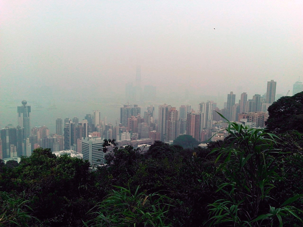 - 미드 레벨 에스컬레이터를 지나, 다시 피크에 왔다. old peak road를 따라 걸어올라오니 금방 도착한다. 무언가 굉장한 야경을 생각했지만, 역시나 날씨가 문제다.
