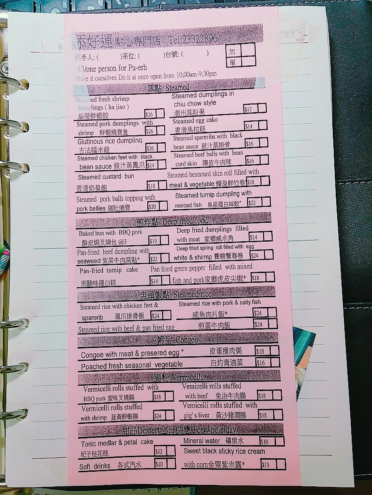 2013년의 팀호완 주문지. 작년에 갔을때도 이것보다 가격대가 조금 더 올라갔던 것으로 기억하는데, 아마 올해도 조금 더 올랐을 것 같다.